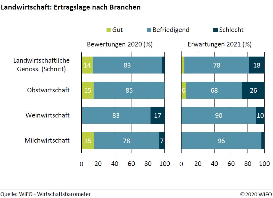 Der Milchsektor konnte im Sommer die Umsätze wieder steigern, für die meisten Sennereien und Molkereien wird das Geschäftsvolumen aber heuer niedriger ausfallen als im vergangenen Jahr, insbesondere was die Exporte betrifft. Trotz der sich verschlechternden Marktbedingungen hat sich die Investitionstätigkeit fortgesetzt und die Ertragslage im Jahr 2020 wird in den meisten Fällen als „befriedigend“ – wenn auch nur selten als „gut“ – angesehen.