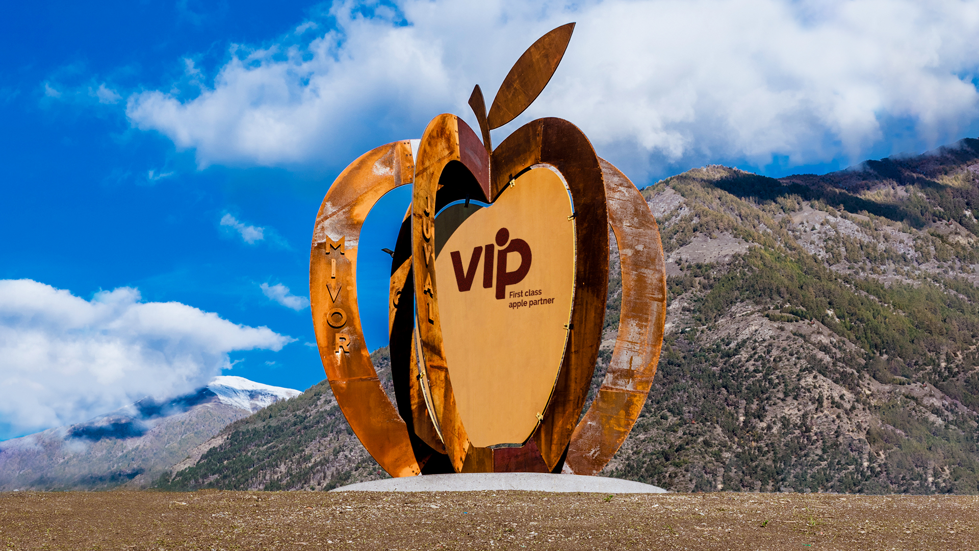 Zwar mussten die Feierlichkeiten aufgrund von Corona abgesagt werden, doch VIP hat mit einer Broschüre und einer Apfelskulptur zwei bleibende Erinnerungen an das Jubiläum geschaffen. Das Jubiläumsmagazin gibt spannende Einblicke in die wichtigsten Meilensteine von VIP, mit Fokus auf die vergangenen zehn Jahre: von den technischen Innovationen in den Genossenschaften über die Entwicklungen in der Produktion und im Verkauf, von der Etablierung der Marke Vinschgau bis hin zu den Maßnahmen und Projekten für noch mehr Nachhaltigkeit. Blickfang und starkes Zeichen zugleich ist zudem die neue Apfelskulptur an der Unterführung in die Latscher Industriezone und damit in unmittelbarer Nähe zum VIP-Hauptsitz. Die sechs Meter hohe und fünf Meter breite Skulptur aus Cortenstahl versinnbildlicht die starke Gemeinschaft der Vinschger Obstwirtschaft, dessen Herzstück ein goldener Apfel bildet.