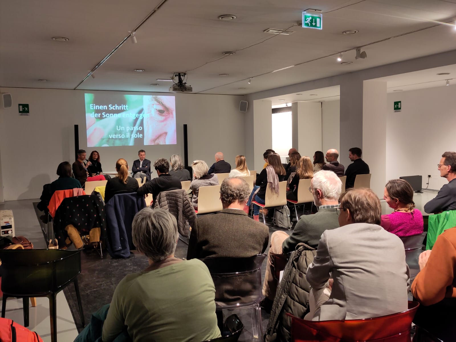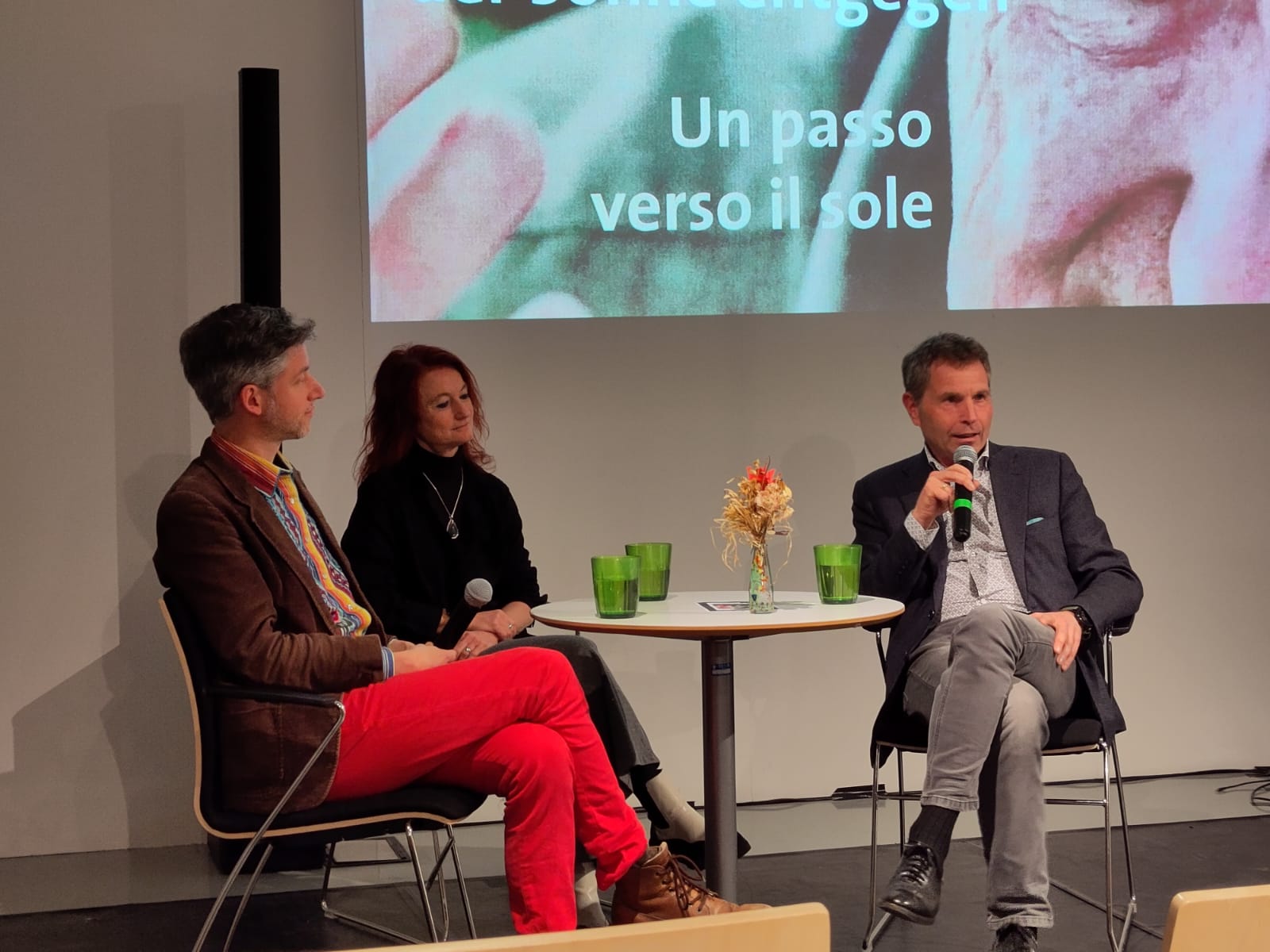 Eine Podiumsdiskussion mit David Hofmann (Climate Action South Tyrol) und Hanspeter Staffler (Dachverband für Umwelt- und Naturschutz in Südtirol EO) unter der Moderation der aktuellen Geschäftsführerin Sonja Abrate war ein Highlight des Abends. Dabei wurden inspirierende Impulse für die Zukunft gesetzt: David Hoffmann stellte klar, dass lediglich 3,5 % aktiver Klimaschützerinnen und Klimaschützer nötig sind, um maßgebliche gesellschaftliche Veränderungen bewirken zu können. Hans-Peter Staffler verdeutlichte die nach wie vor aktuelle Notwendigkeit, „Sand ins Getriebe zu streuen“ und betonte die Dringlichkeit der transformativen Entwicklung nachzukommen um den großen, schweren Dampfer des Kapitalismus der, laut Staffler, Mitschuld an der Ausbeutung der Umwelt ist, umzukehren.