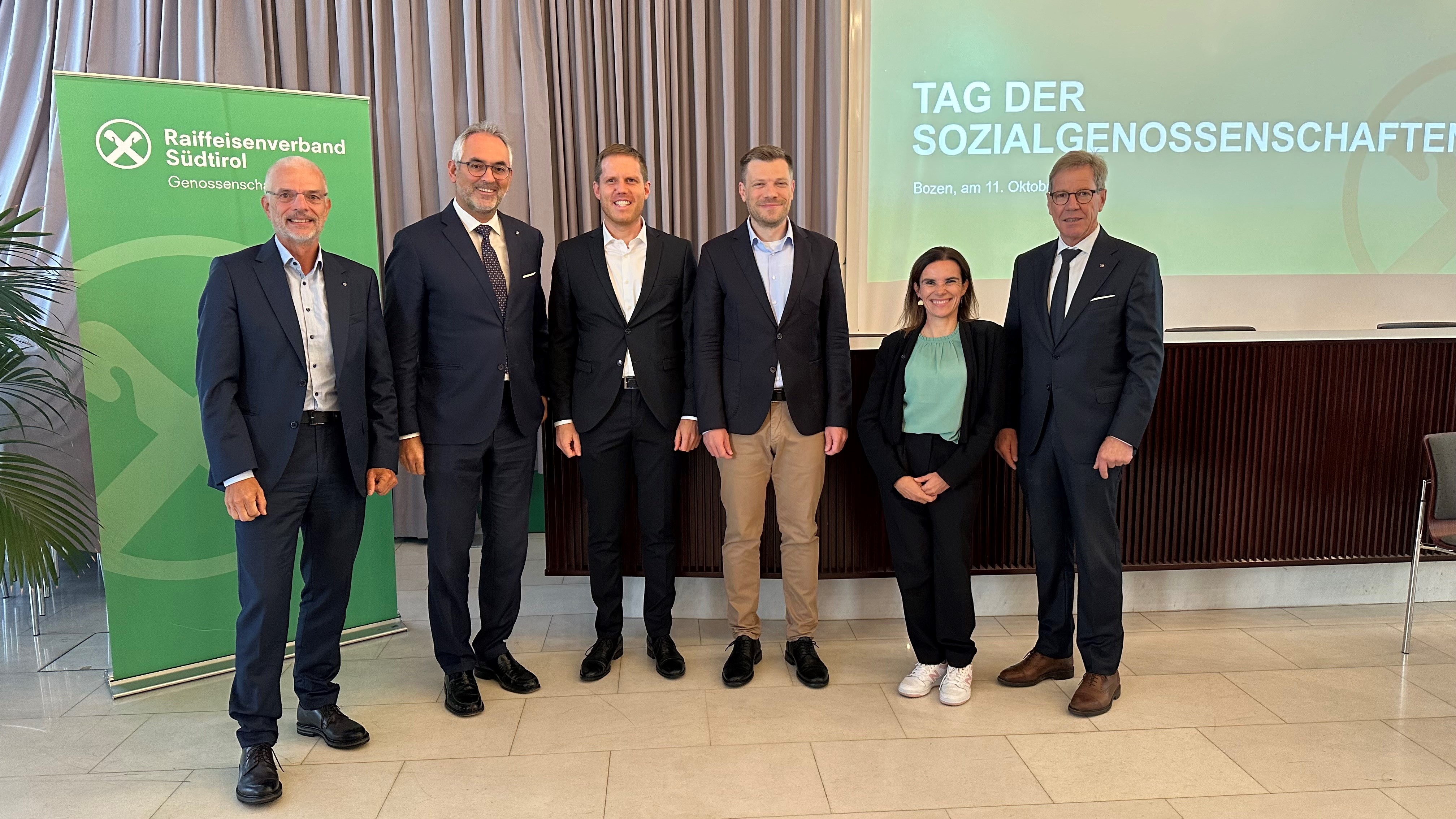 Vertreterinnen und Vertreter der Mitgliedsgenossenschaften des Raiffeisenverbandes Südtirol aus dem Bereich Sozialgenossenschaften trafen sich am 11. Oktober in Bozen zum Tag der Sozialgenossenschaften. Obmann Herbert Von Leon, Generaldirektor Robert Zampieri und Vizedirektor und Bereichsleiter Soziales & Bildung, Christian Tanner begrüßten die Teilnehmenden und unterstrichen die große direkte und indirekte Bedeutung dieser Unternehmen für die Wirtschaft in Südtirol. Von Leon unterstrich: „Mit der zweiten Ausgabe des Tags der Sozialgenossenschaften möchten wir zeigen, was es heißt im Netzwerk zu arbeiten. Es ist ungemein wichtig, Kooperationen im weitesten Sinne einzugehen.“