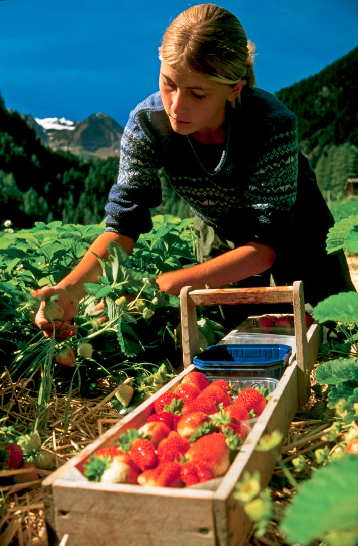 Die Marteller Erdbeere gehört sicher zu den bekanntesten im Land und über die Grenzen hinaus. Nun steht Martell ganz im Zeichen der kleinen süßen Frucht, denn die Ernte der Erdbeere ist gestartet. Die Erdbeeren mit dem Südtiroler Qualitätszeichen gibt es nie frischer als zurzeit und Frische ist bei den empfindlichen Früchtchen das Um und Auf für einen genussvollen Verzehr. Übrigens gibt es Anfang Juli auch Himbeeren und andere Kleinfrüchte von den Feldern des Martelltals. Seit Mitte Juni ist auch das Detailgeschäft in der Erdbeerwelt Trattla im Martelltal geöffnet. Und am 27. und 28. Juni laden die Marteller zum großen Südtiroler Erdbeerfest. Während der Beerenzeit gibt es in Restaurants und Hotels viele Köstlichkeiten rund um die Marteller Erdbeere.