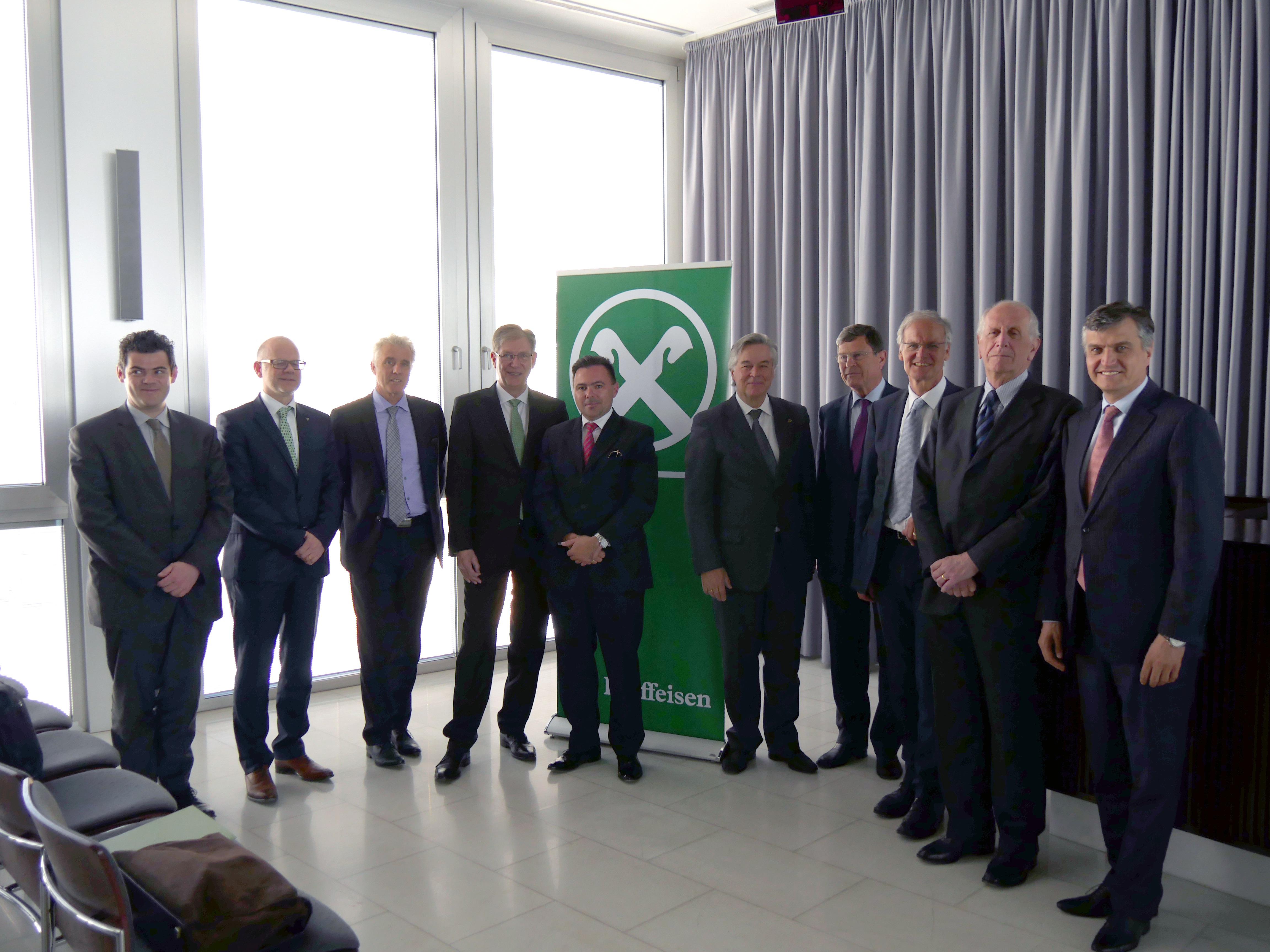 Vertreter von Raiffeisen und Assimoco mit Ernst Strackhaar, Aministratore Delegato von Assimoco (4.v.links)