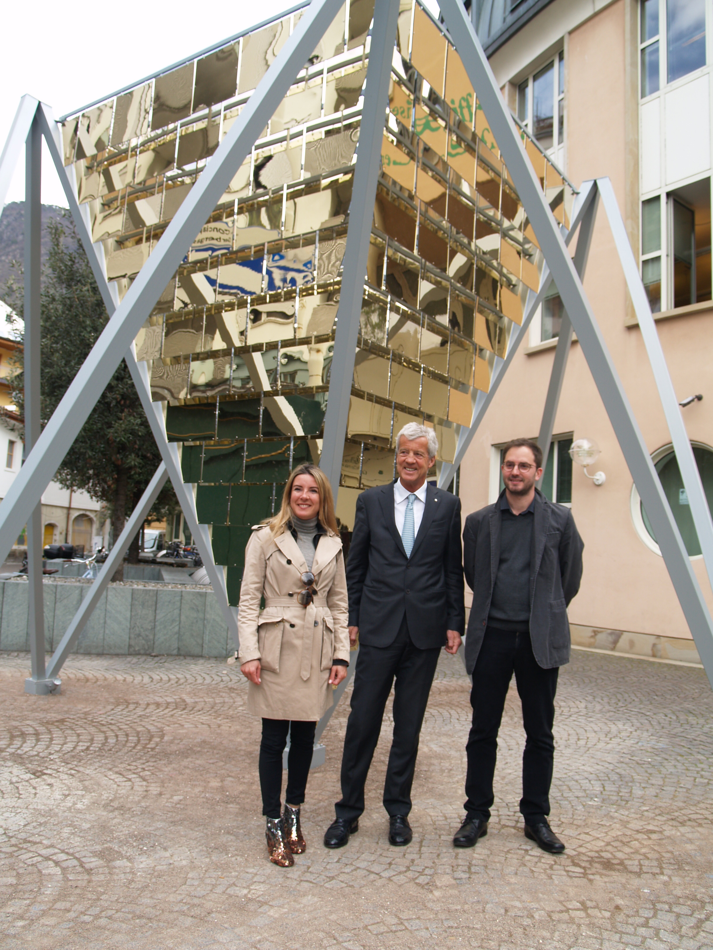 An Manfred Eccli, den Förderpreisträger 2017, ging der Auftrag zur Gestaltung eines großen Projektes für den privaten Außenraum der Raiffeisen Landesbank Südtirol. „Der Eingangsbereich der Bank erhält mit „Blue Sky“ ein hochwertiges zeitgenössisches Kunstwerk und einen besonderen Blickfang“, sagt Präsident Michael Grüner anlässlich der offiziellen Präsentation des Kunstwerks.
