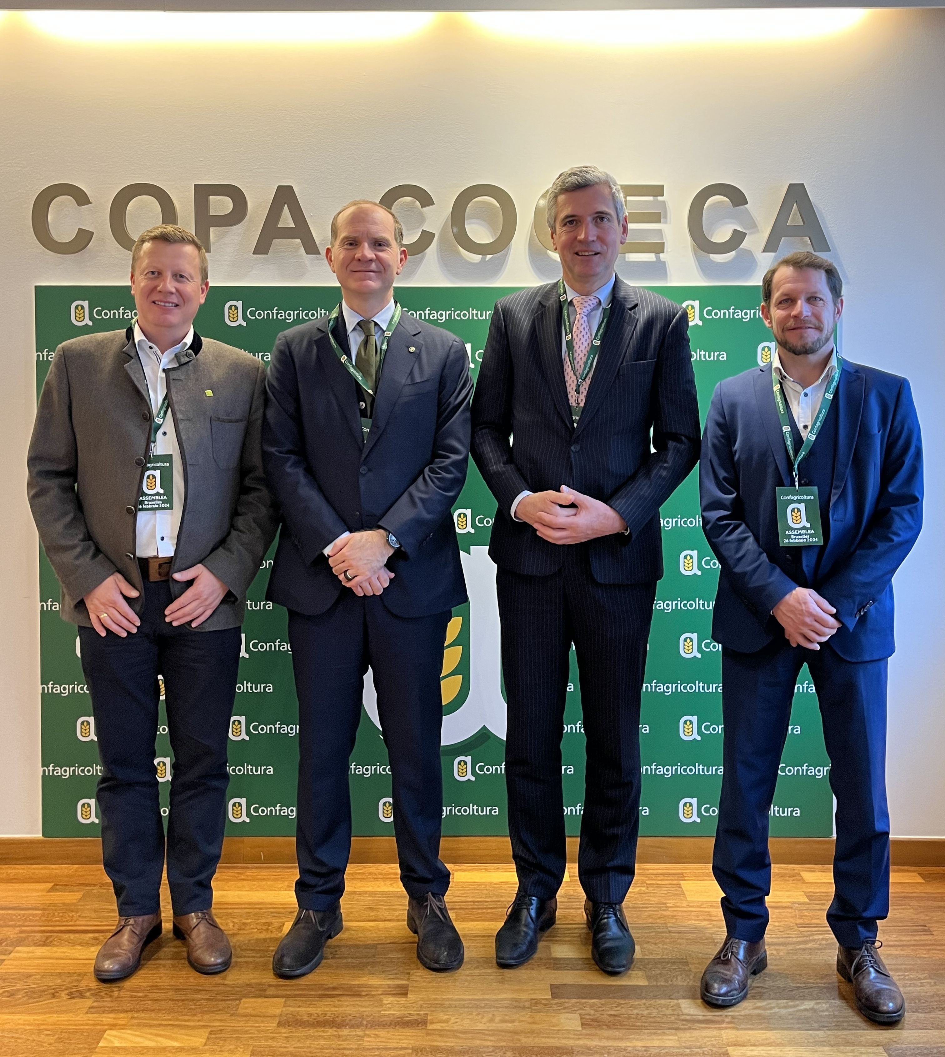 Der Sitz der europäischen Verbände für Bauern und Genossenschaften Copa Cogeca in Brüssel für die Jahreshauptversammlung der Confagricoltura war bewusst gewählt, denn der einflussreiche Bauernverband sieht vor allem die EU in der Pflicht.
