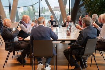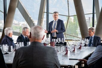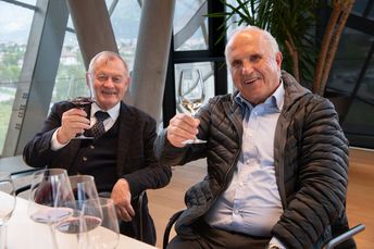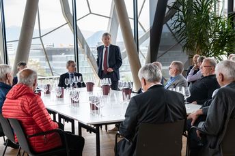Nach einer Weinverkostung klang das Treffen in der Kellerei Bozen mit einer gemütlichen Marende aus und die ehemaligen Geschäftsführer fachsimpelten noch bis in den späten Nachmittag über die Entwicklung „ihrer“ Raiffeisenkassen.