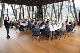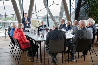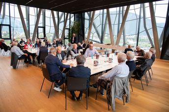 Auf Einladung des Raiffeisenverbandes und der Raiffeisen Landesbank trafen sich rund 40 ehemalige Geschäftsführer der Südtiroler Raiffeisenkassen zu einem geselligen Beisammensein. Nach einer Führung durch die Kellerei Bozen wurden Ereignisse besprochen und viele Geschichten aus der Vergangenheit erzählt.