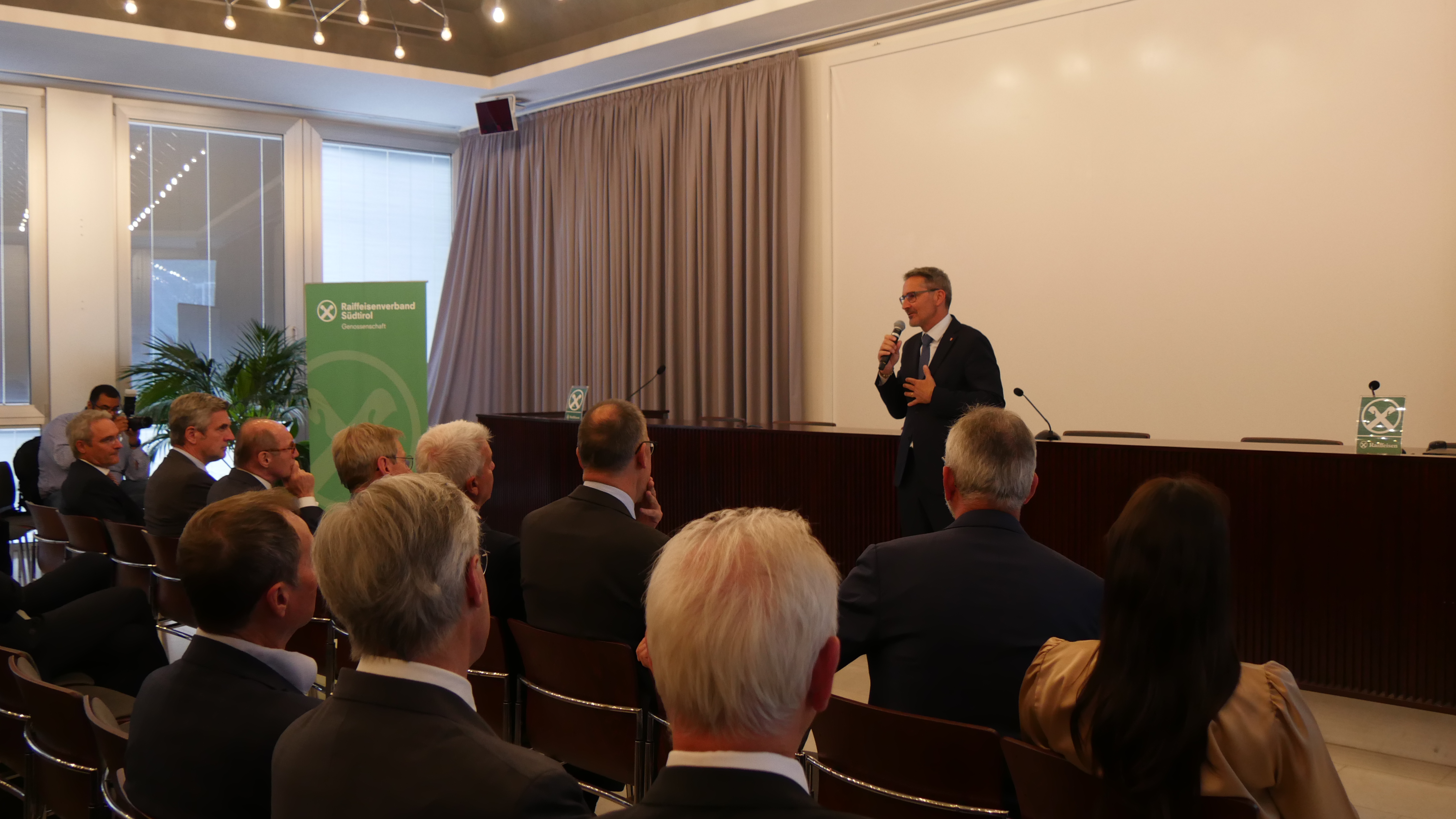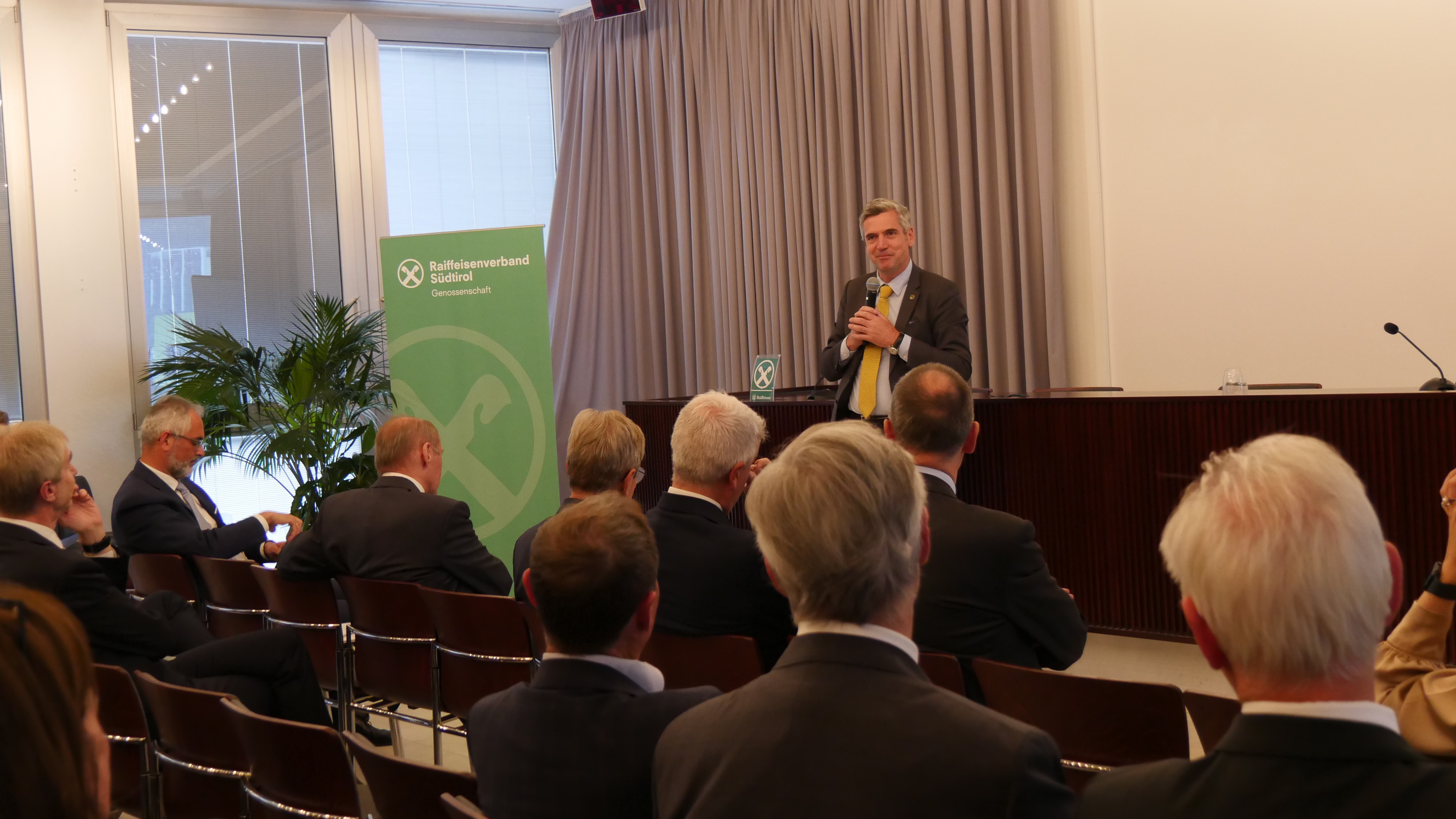 Geladen waren am gestrigen Abend (27.05.) Verantwortliche aus den 39 Raiffeisenkassen und der Südtiroler Landesbank sowie Vertreter*innen aller Südtiroler Banken. Die Raiffeisenkassen in Südtirol sind mit ihren 166 Schaltern für mehr als 81.000 Mitglieder kapillar in der Provinz tätig und demnach überaus sensibel für jegliche europäische Regulierungstendenzen von Seiten der Europäischen Union. „Für uns ist es wichtig, die hohe und für Südtirol so wichtige Wirtschaftskraft der Raiffeisen Genossenschaften zu erhalten“, so der Generaldirektor des Raiffeisenverbandes Robert Zampieri in seiner Begrüßung. „Die Raiffeisenkassen müssen bei allen Zentralisierungs- und Regulierungstendenzen auch künftig Bestand haben.“