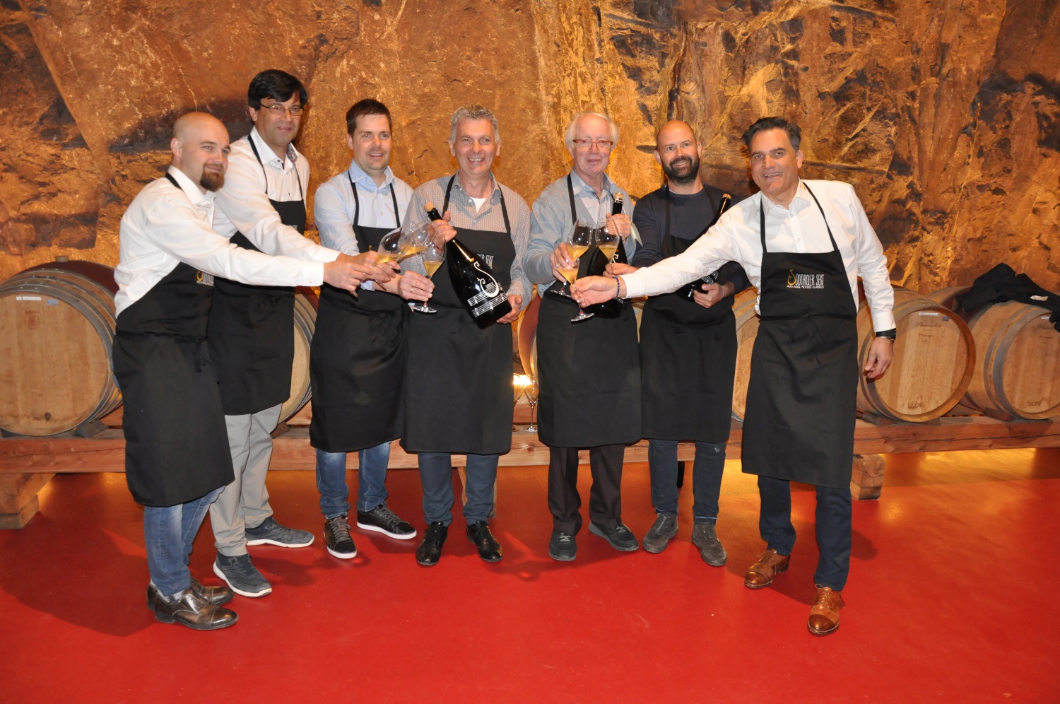 Andrea Moser, Kellermeister Kellerei Kaltern; Josef Romen, Kettmeir; Hannes Kleon, Von Braunbach; Lorenz Martini, Comitissa; Sepp Reiterer, Arunda; Wolfgang Tratter, Kellerei St. Pauls und Stefan Kapfinger, Kellerei Meran;