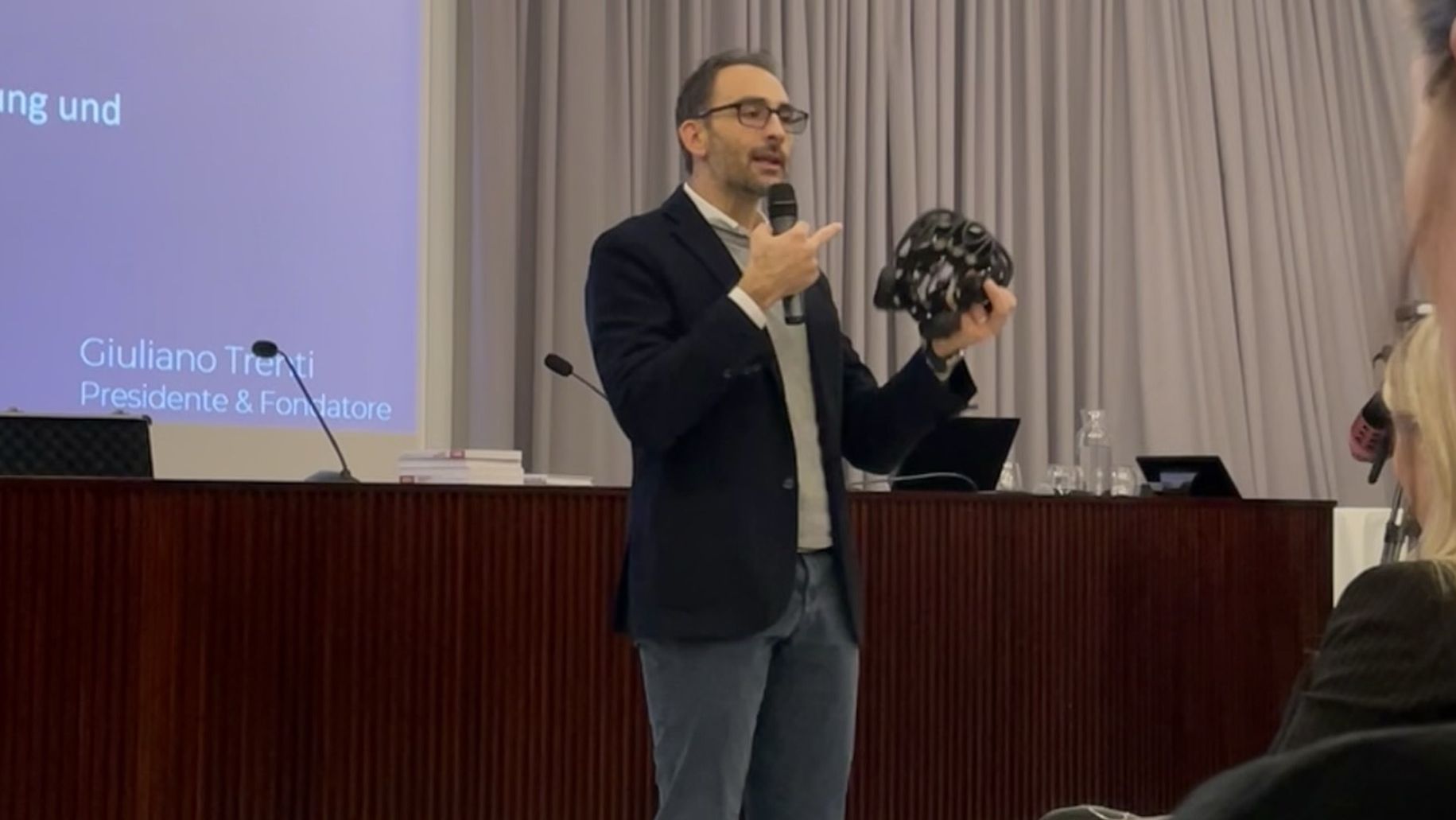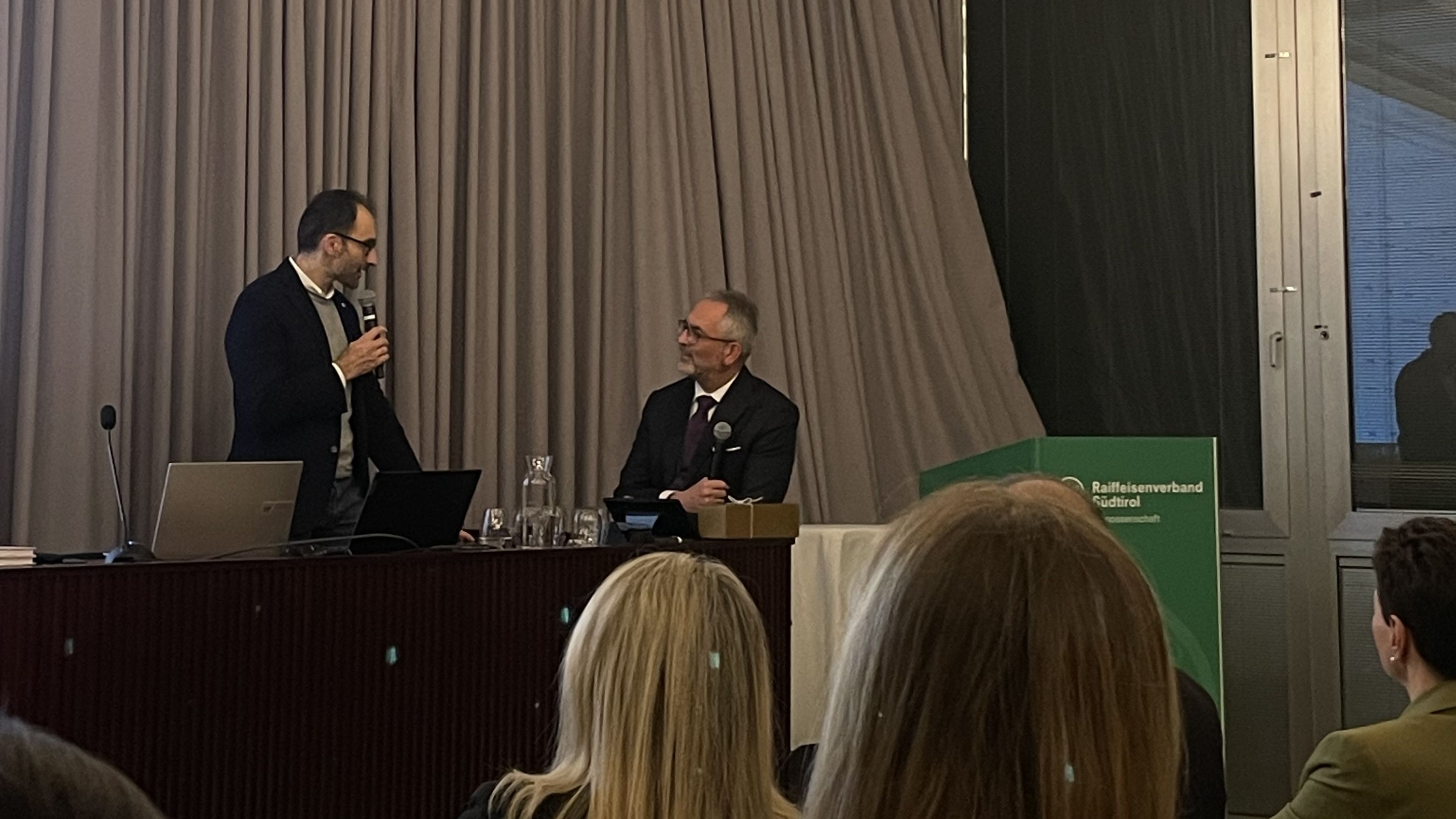 Giuliano Trenti, TEDx-Redner und Gründer von NeurExplore, ging bei der Veranstaltung auf Einladung von Robert Zampieri, Generaldirektor des Raiffeisenverbandes, auf wissenschaftliche Erkenntnisse über das menschliche Verhalten in Unternehmen ein: datenbasiert und dennoch kurzweilig.