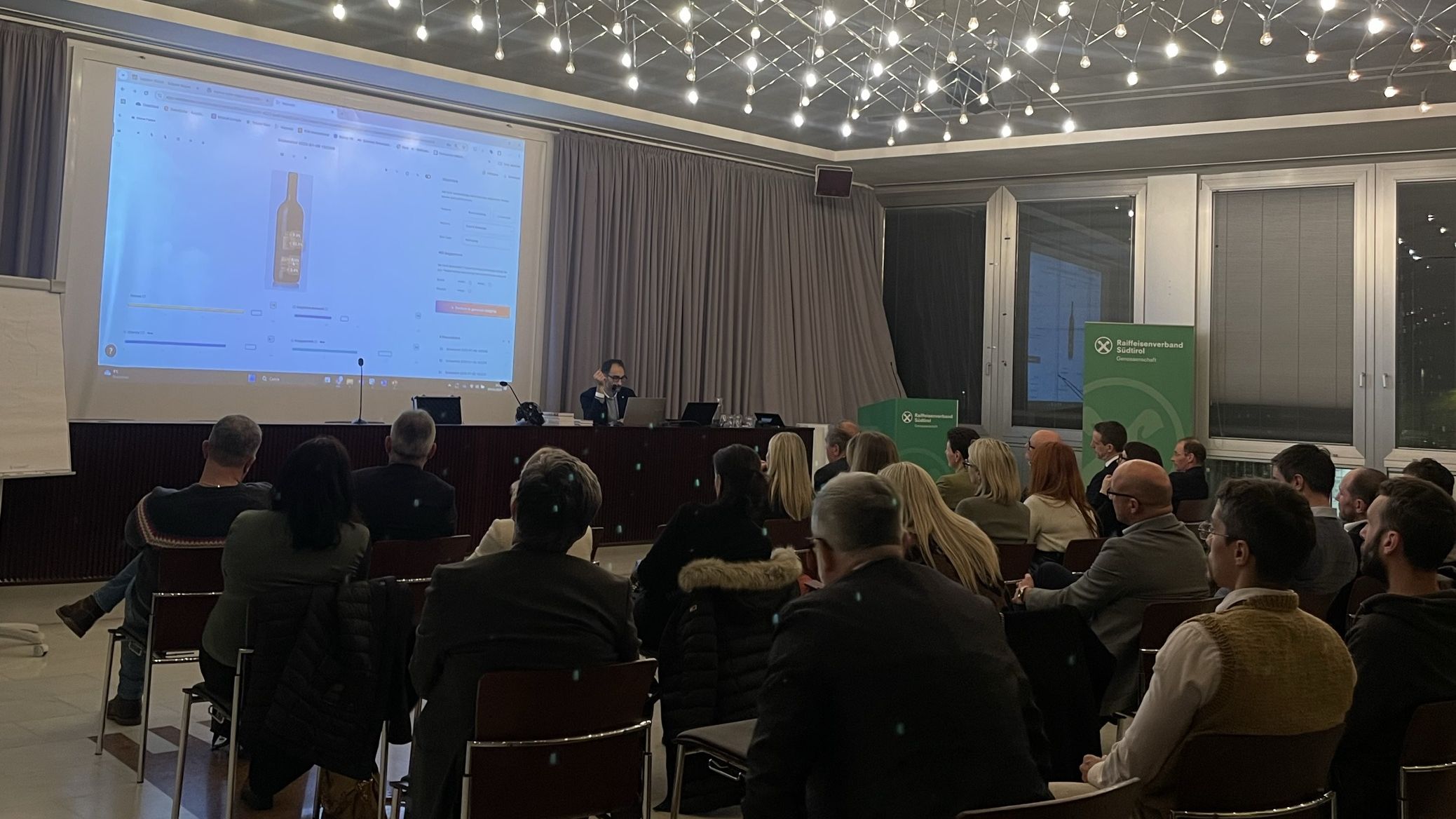 Mit einer abschließenden live-Analyse von Unternehmenswebseiten und Weinetiketten, die auf Engagement und Konversionsraten analysiert wurden, begeisterte Giuliano Trenti das Publikum rundum.