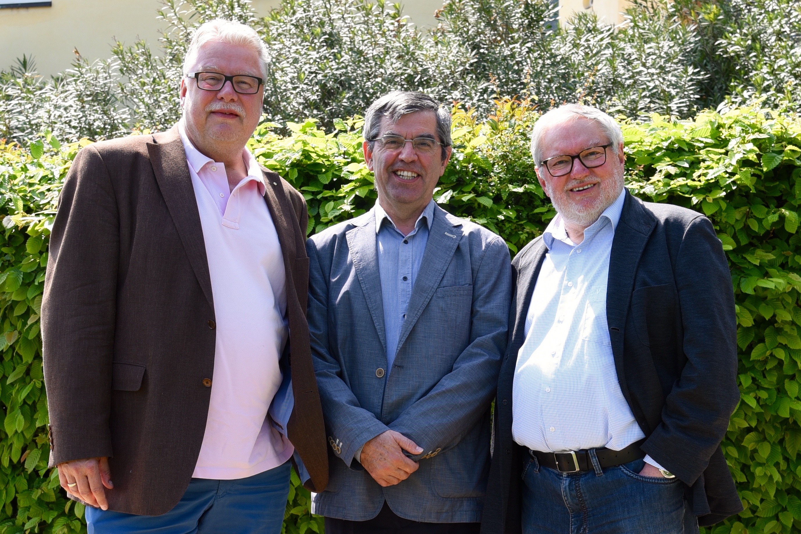 Die drei Referenten Georg Reider, Obmann der Sozialgenossenschaft Zentrum Tau und ehemaligen Provinzial der Südtiroler Franziskaner, Anselm Bilgri, früherer Prior von Kloster Andechs und Nikolaus Birkl, Rechtsanwalt in München, Systemischer Berater und Coach zeigen im Rahmen des Führungsseminars "Tage des Innehaltens", dass Achtsamkeit im Alltag wichtig für den Umgang mit Mitarbeitern ist.