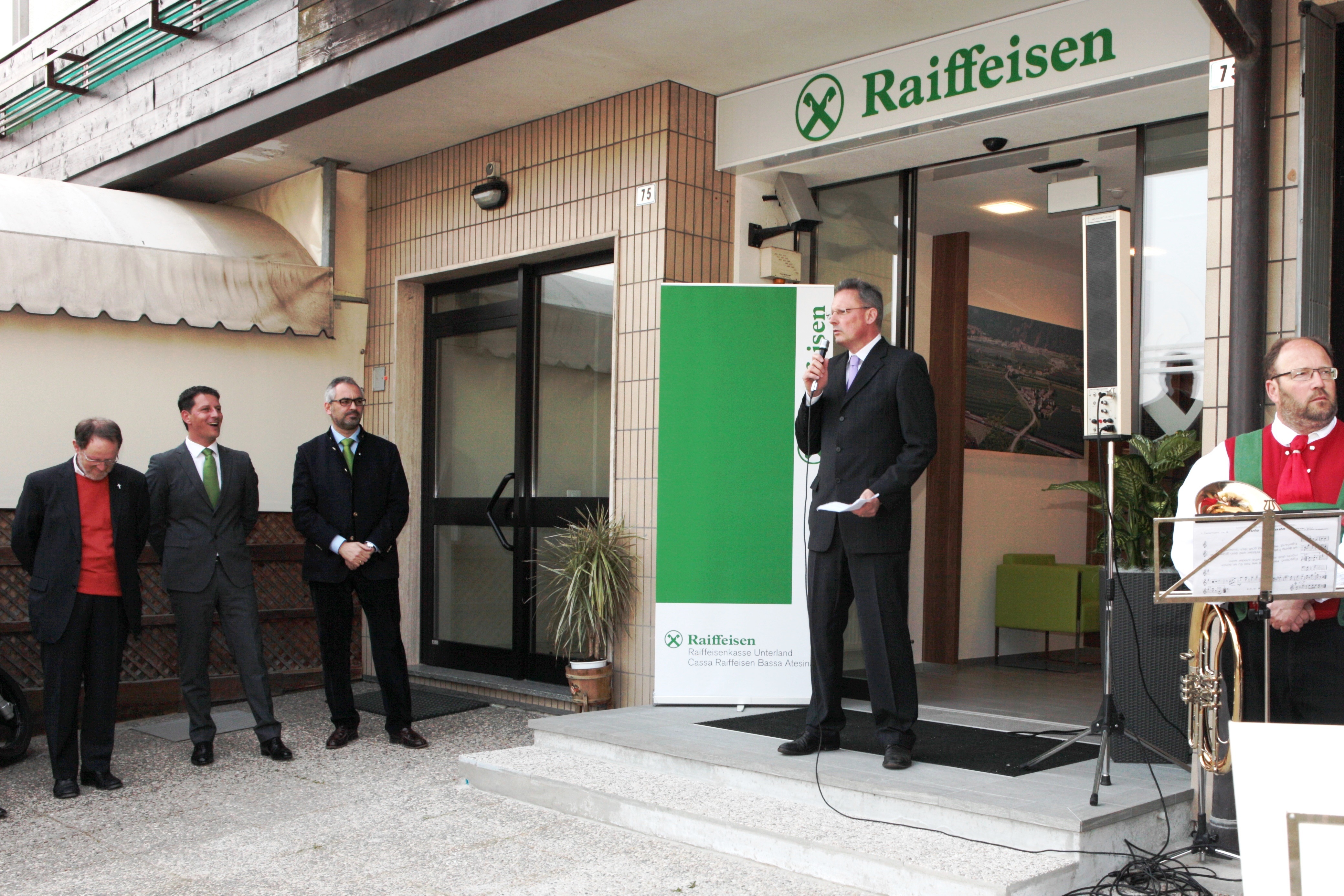 Bürgermeister Alessandro Beati betonte die Bedeutung der Raiffeisenkasse für die Dorfgemeinschaft und dankte der Bank für die vielfältige finanzielle Unterstützung der Vereine und sozialer Anliegen im Dorf. Im Anschluss an die Grußworte segnete Dekan Walter Visintainer die neu gestaltete Geschäftsstelle.
