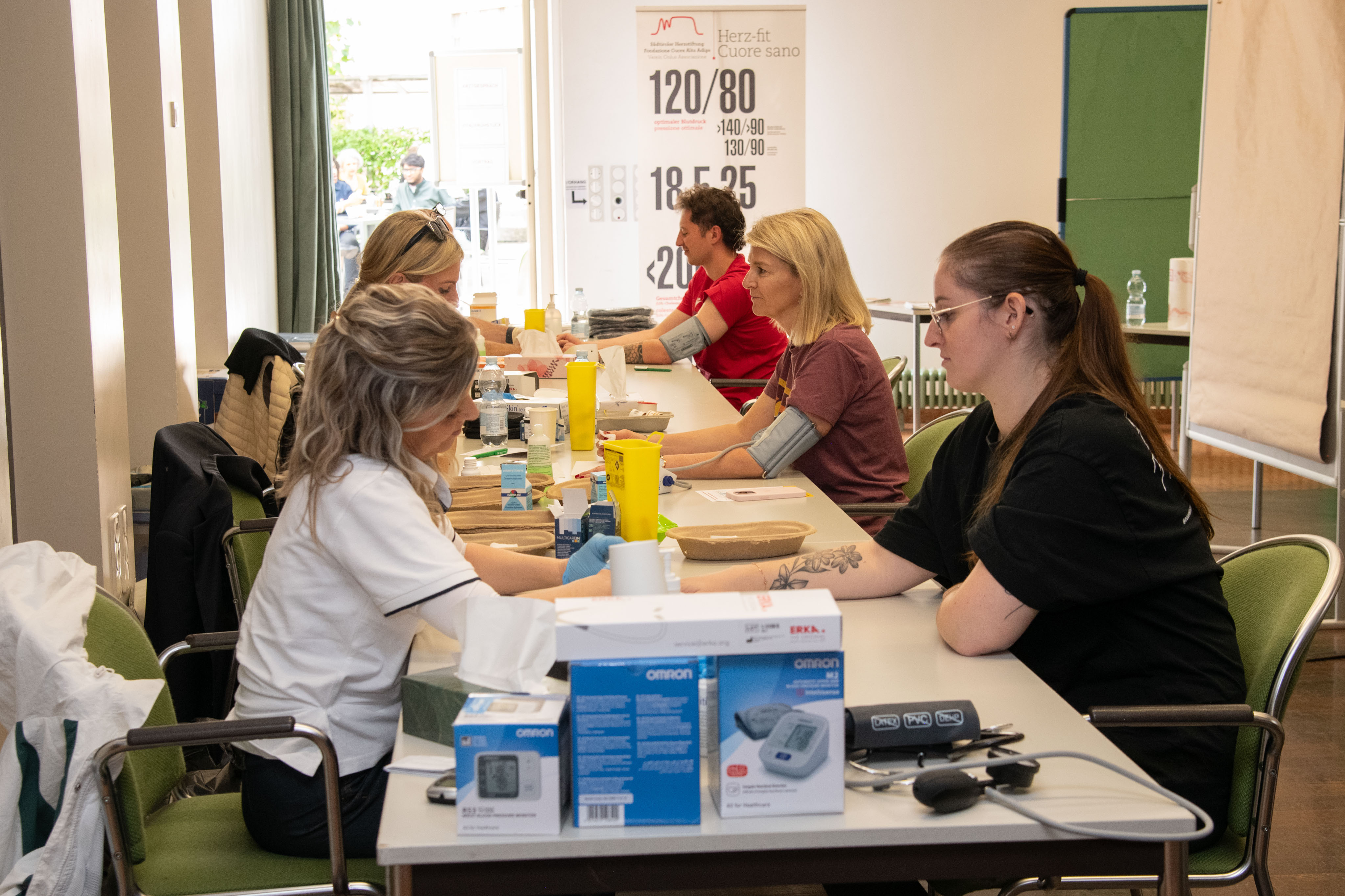 Im Rahmen der Veranstaltung konnten die Teilnehmenden ihren Blutdruck und Blutzucker kontrollieren lassen, sich einem Belastungstest auf dem Fahrrad unterziehen und ihre Herzgesundheit analysieren. Die Messungen wurden direkt vor Ort von Fachleuten der Südtiroler Herzstiftung durchgeführt, anschließend standen Ärzte für kurze Beratungsgespräche zur Verfügung – individuell, praxisnah und direkt auf die jeweiligen Testergebnisse abgestimmt.