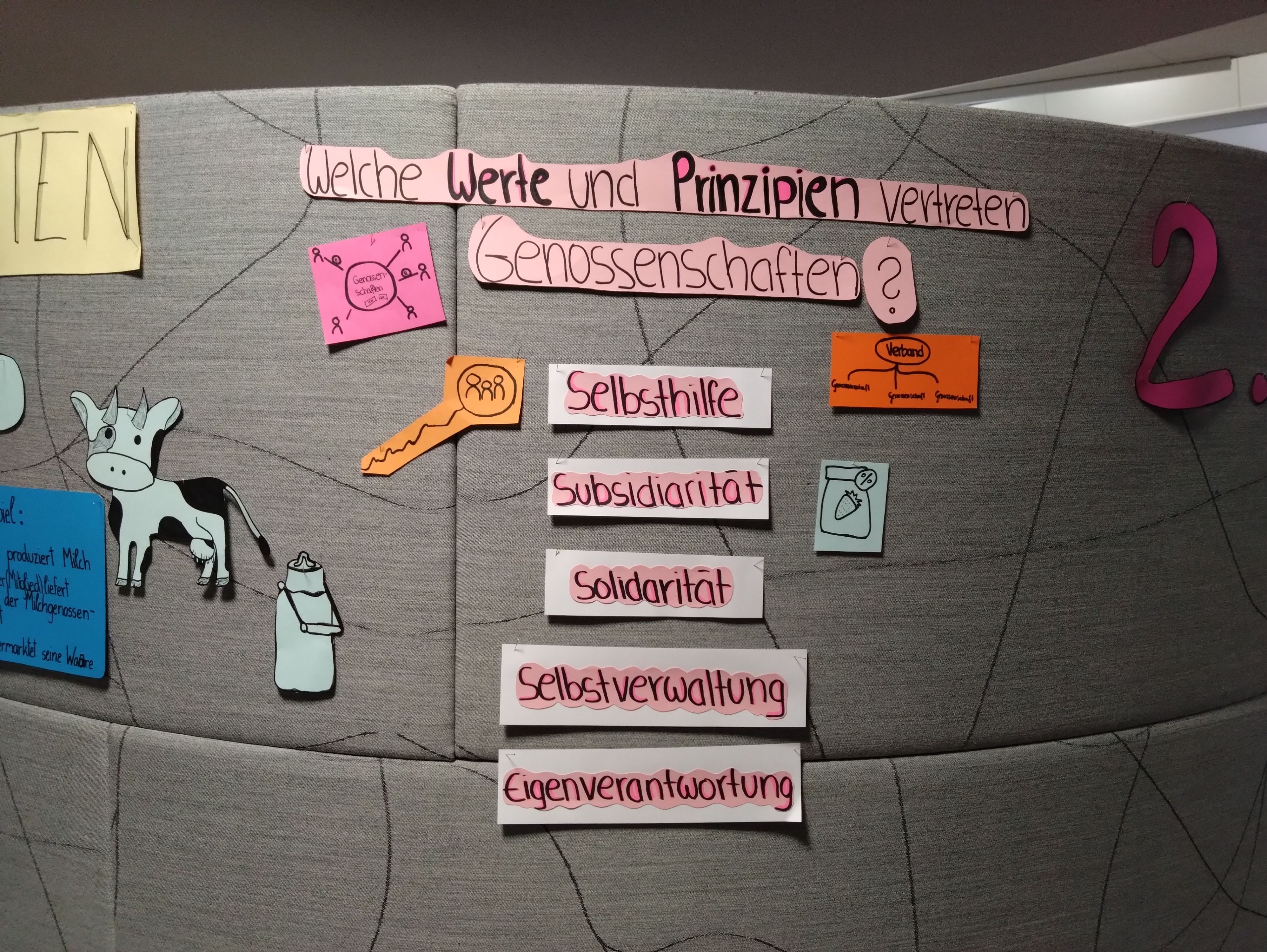 „Uns war es wichtig, den Schüler*innen aufzuzeigen, welche Organe eine Genossenschaft benötigt und welche Aufgaben wie am besten verteilt werden“, resümieren Karl Heinz Weger und Sarah Watschinger nach ihrem Besuch der Fachschule für Hauswirtschaft und Ernährung Tisens. Sie haben an der Vollversammlung der Schülergenossenschaft „hondgmocht & hausgmocht“ teilgenommen, deren Mitglieder alle Schüler*innen der dritten und vierten Klasse sind.