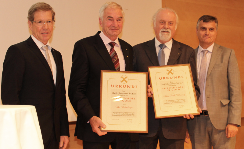 Als Zeichen des Dankes überreichte er dem langjährigen Obmann Peter Hechenberger und dem Direktor Arnulff Perkounigg die höchste zu vergebende Auszeichnung, die Raiffeisen-Ehrennadel in Gold. Eine Anerkennung für die besonderen Verdienste um das Raiffeisen-Genossenschaftswesen in Tirol.