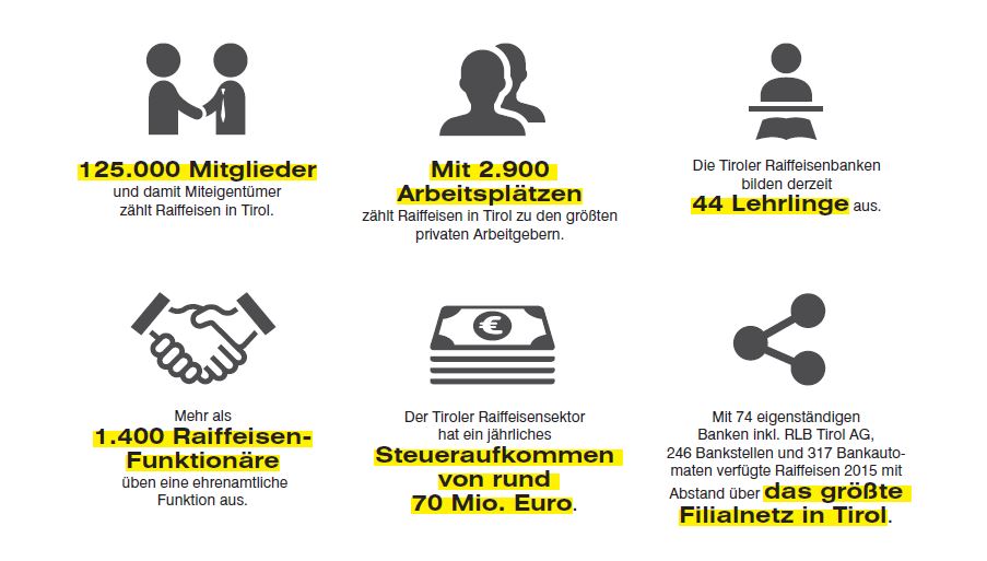 Die Raiffeisen-Genossenschaften befinden sich damit in Tiroler Eigentum und haben per Gründungsauftrag nicht die Gewinnmaximierung, sondern die Förderung der Mitglieder für sich als zentrale Aufgabe definiert. Mehr als 1.400 ehrenamtliche Funktionäre übernehmen Verantwortung in Tirols Genossenschaften. "Wir erleben eine Renaissance der genossenschaftlichen Werte", meint der Sprecher der Bankengruppe im Hinblick auf den gesellschaftlichen Wertewandel.