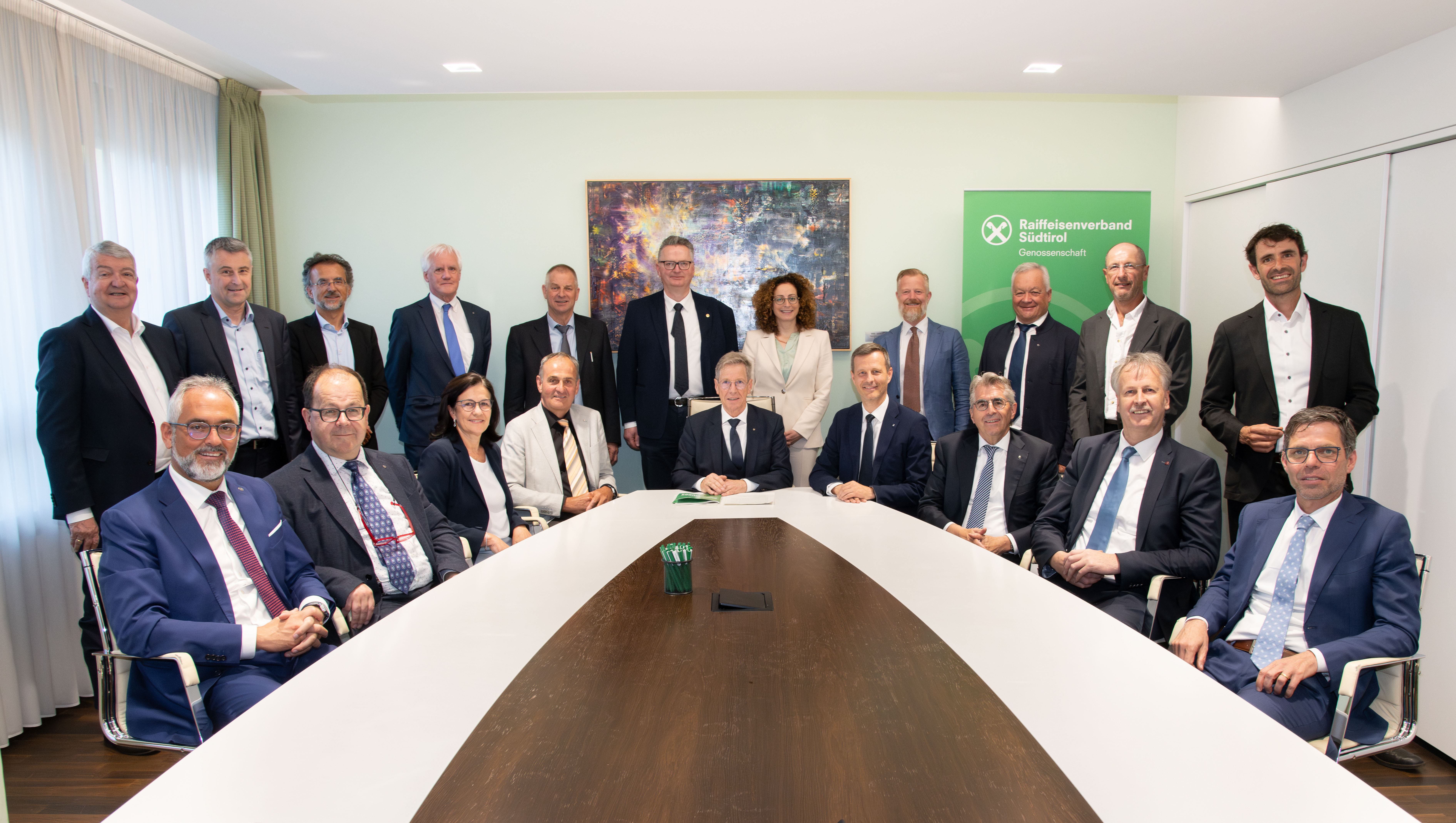 Die Raiffeisen-Genossenschaften bilden eine starke Wirtschaftskraft in Südtirol. „Der enge Zusammenhalt ist ein wichtiger Faktor, der uns stark macht“, sagte Generaldirektor Robert Zampieri. Die Bruttowertschöpfung der gesamten Raiffeisenorganisation lag bei 876 Mio. Euro; statistisch entspricht das 3.751 Euro pro Südtiroler Haushalt. Rechnet man die Auszahlungen an die Mitglieder der landwirtschaftlichen Genossenschaften von Obst, Wein und Milch mit ein, erreicht die Wertschöpfung knapp 1,6 Mrd. Euro. Das gesamte Eigenkapital aller Raiffeisen-Genossenschaften belief sich zum Jahresende auf 3,9 Mrd. Euro und die aggregierte Bilanzsumme auf 26,5 Mrd. Euro. Die Raiffeisen-Genossenschaften bieten rund 8.500 Arbeitsplätze. Von den rund 2.800 gewählten Mandataren und Mandatarinnen der Mitgliedsgenossenschaften sind knapp ein Fünftel Frauen.