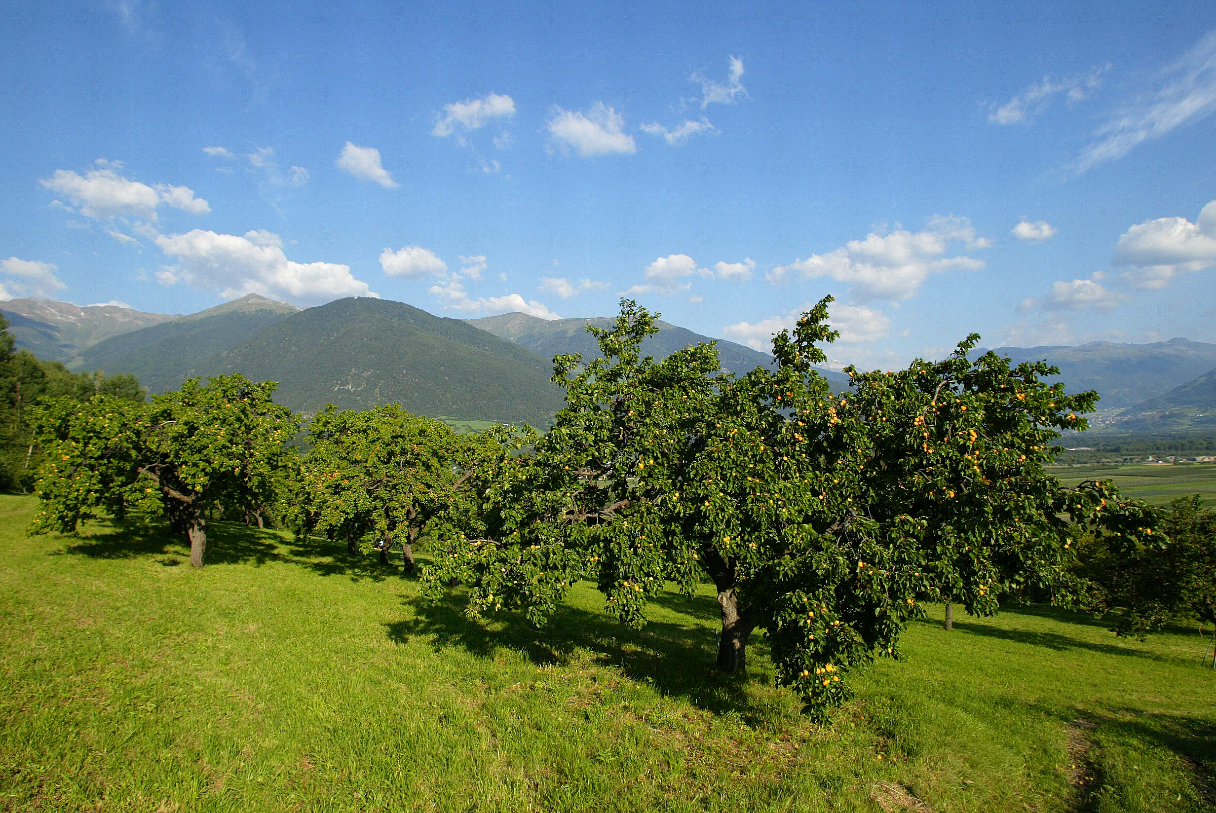 Nach Europa kam das Rosengewächs ursprünglich mit Alexander dem Großen aus China und dann über Griechenland und Italien nach Südtirol. Hier im Vinschgau hat die süße, gelb-orange Frucht ideale Wachstums- und Reifebedingungen gefunden: Bei hohen Temperaturschwankungen und geringen Niederschlägen gedeiht die Marille auf 500 bis 1000 Meter Meereshöhe zwischen Naturns, Kastelbell, Schlanders und dem Vinschgauer Oberland besonders gut und erreicht die, für sie so typische, Farbe und den vollen Geschmack.