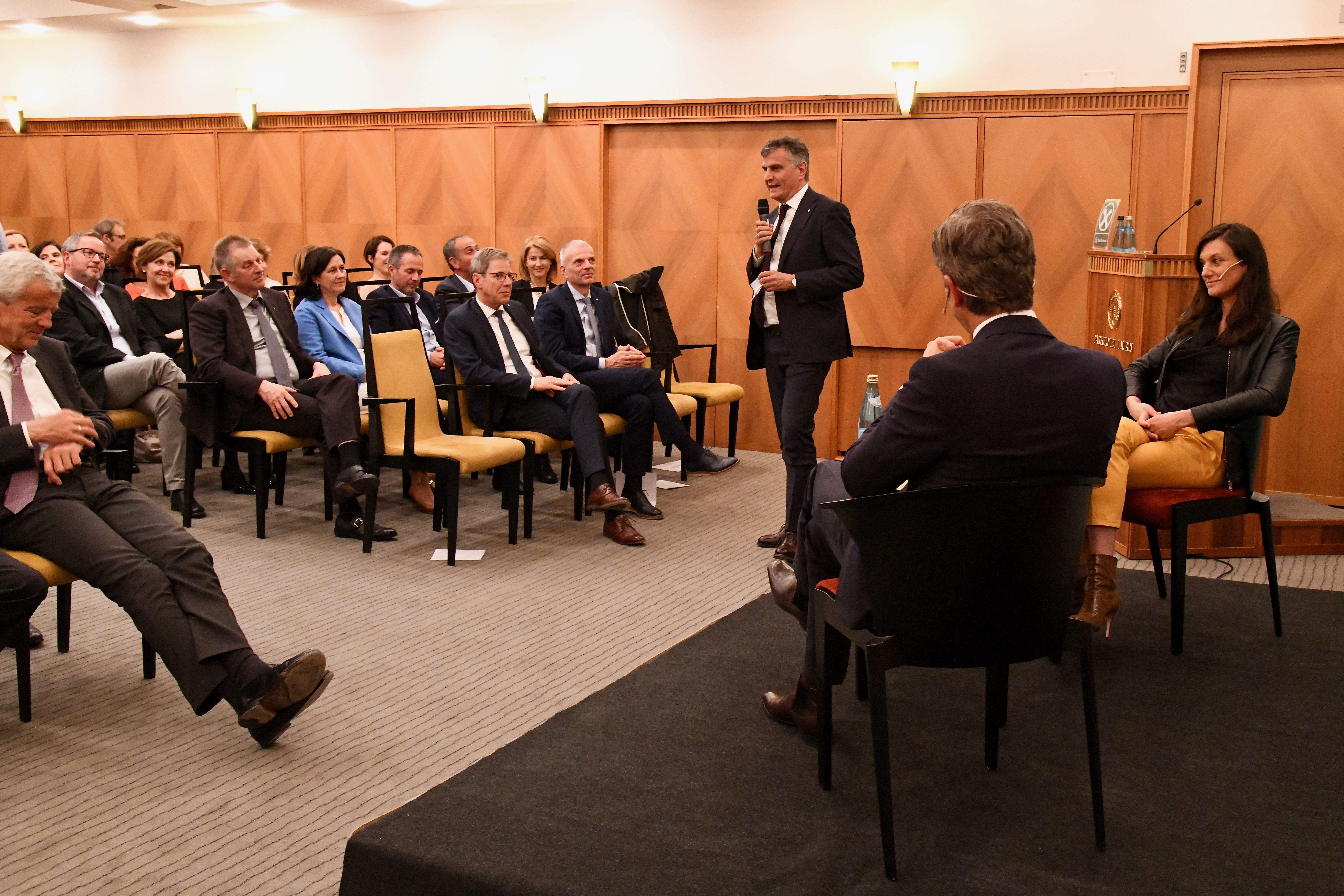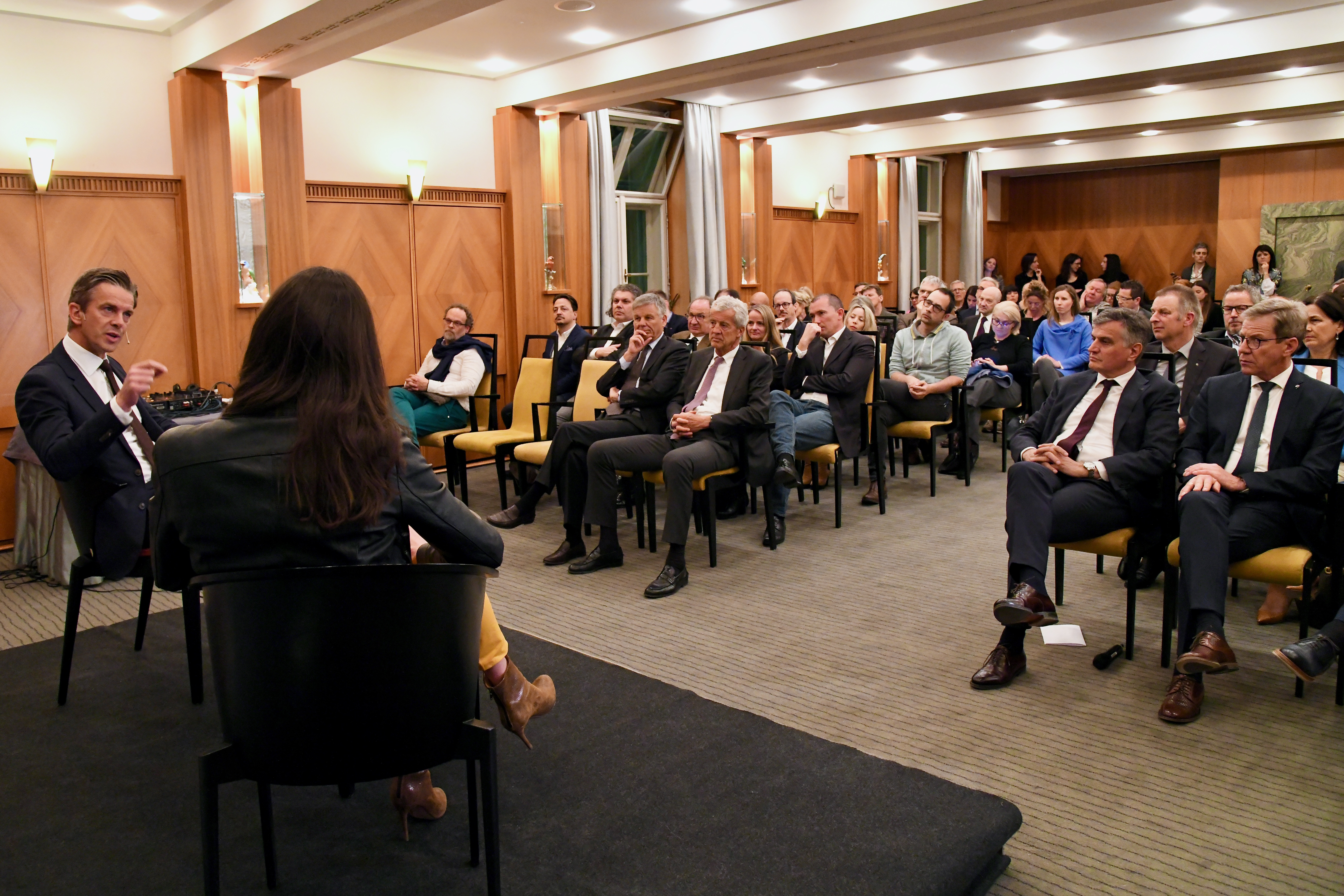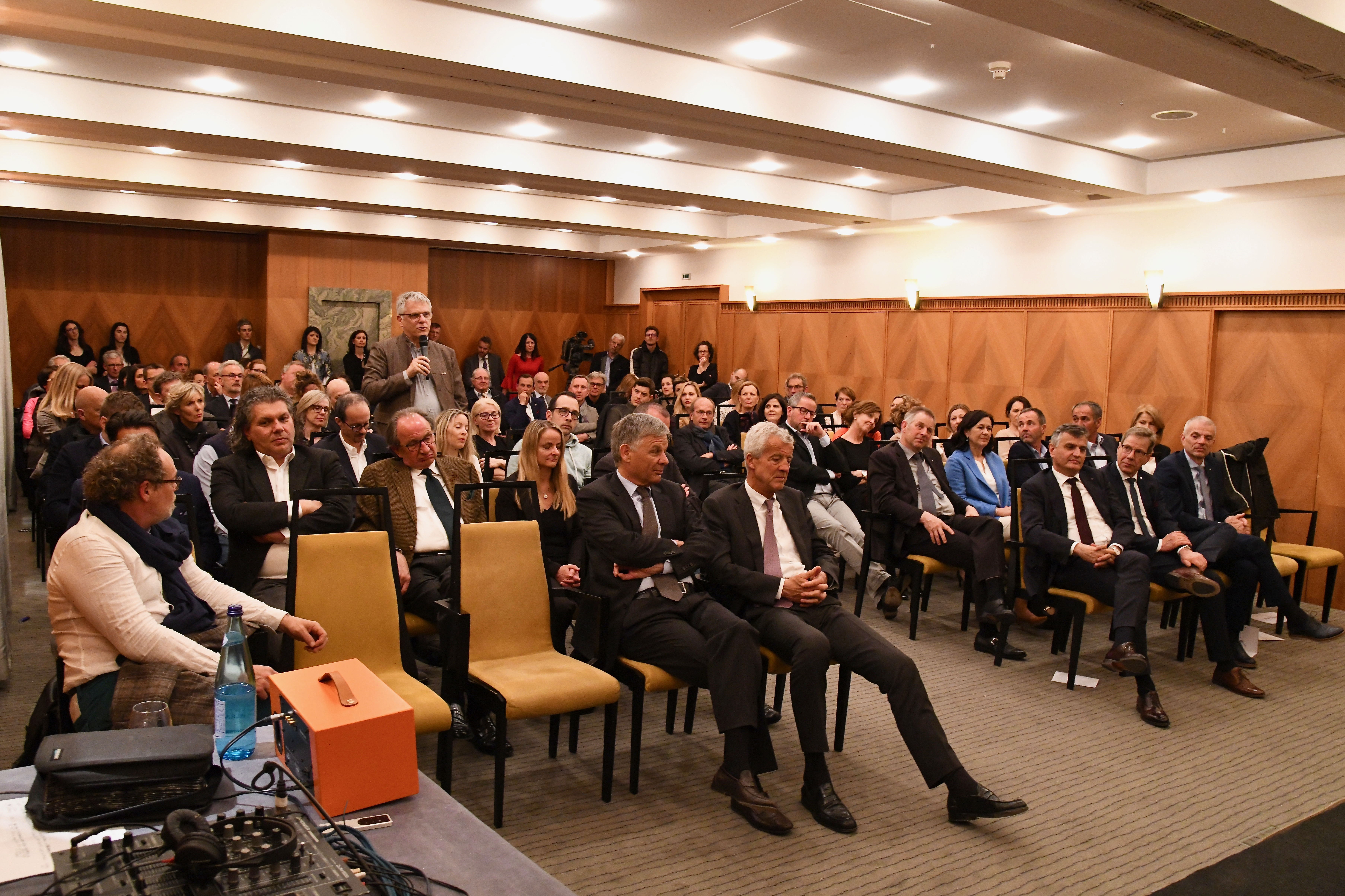 Der in Hamburg lebende Südtiroler Markus Lanz zählt mit seiner gleichnamigen Talkshow zum fixen Bestandteil des ZDF-Abendprogramms. Dementsprechend groß war auch das Interesse der hiesigen Medienvertreter. Über 70 Journalistinnen und Redakteure waren ins Parkhotel Laurin gekommen und folgten dem Gespräch zwischen Moderatorin Verena Gruber und Markus Lanz zum Thema „Öffentliche Meinung im Umbruch: Medienarbeit in Zeiten von Populismus“.