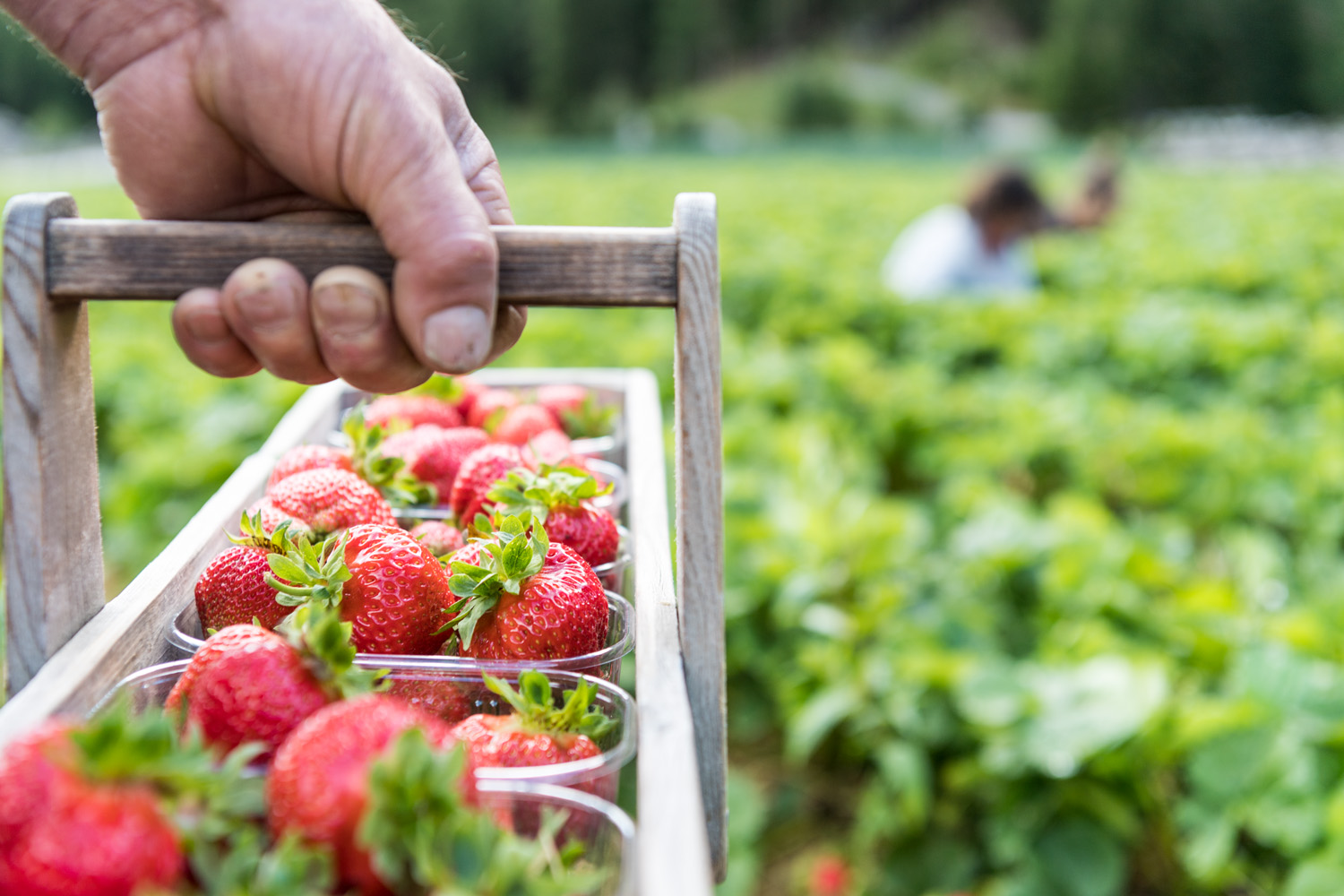 Im Martelltal ist die Erdbeerernte voll im Gang und man rechnet mit einer Menge von 300 bis 350 Tonnen. Foto: IDM Südtirol/Helmuth Rier