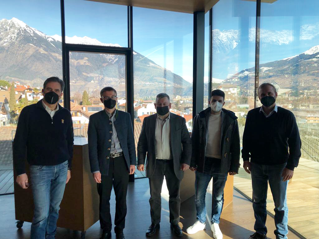 Über die aktuelle Themen im Weinbau berichteten: Andreas Kraus, Direktor vom Amt für Obst- und Weinbau, Andreas Kofler, Präsident des Konsortiums Südtirol Wein, Fabian Pernter und Andrea Simoncelli vom Pflanzenschutzdienst beim Amt für Obst- und Weinbau, sowie Thomas Weitgruber vom Südtiroler Beratungsring für Obst- und Weinbau.