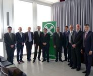 Direktor und Obmann des Raiffeisenverbandes, Paul Gasser und Heiner Nicolussi-Leck, beim Zusammentreffen mit Gugliano Poletti, Minister für Arbeit und Sozialpolitik, (dritter v.r.) in der Abgeordnetenkammer in Rom