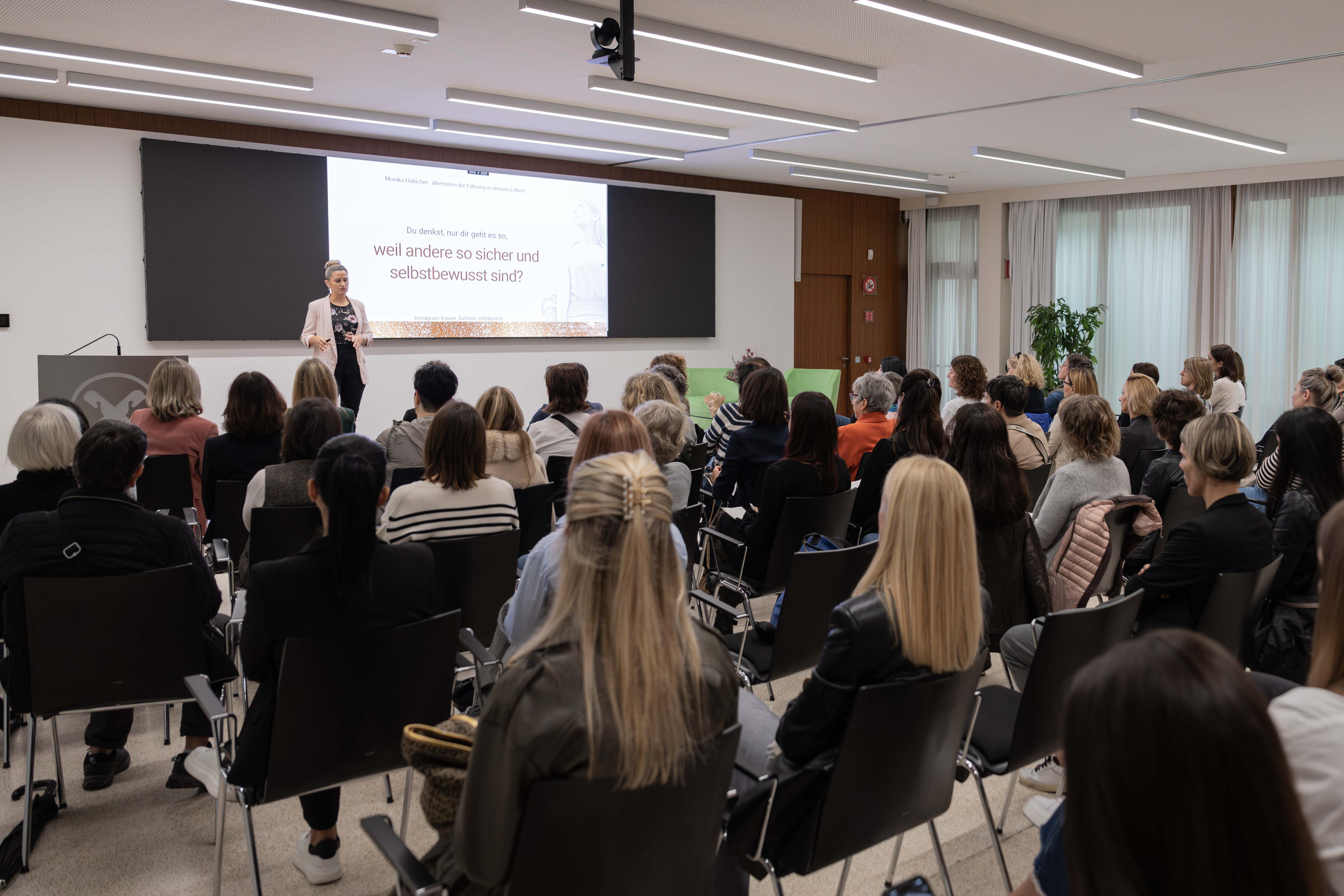 Die Arbeits- und Organisationspsychologin Monika Habicher ermutigte die anwesenden Frauen, kleine Ziele zu setzen und laufend Erfahrungen zu sammeln, um ihr Selbstbewusstsein zu stärken: „Es hilft, sich bewusst zu machen, was wir bereits erreicht haben, und uns selbst Anerkennung entgegenzubringen“, betonte sie.