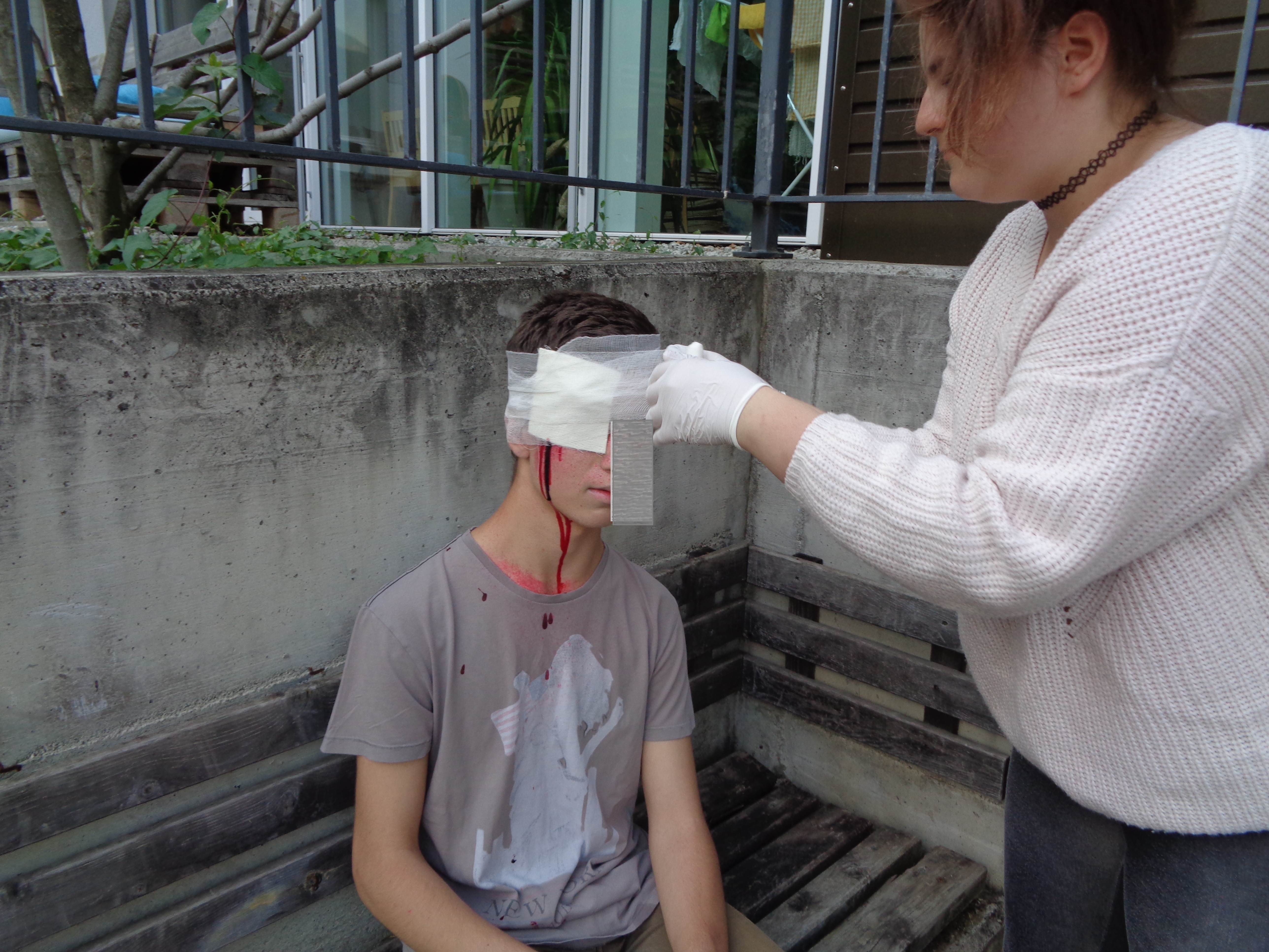 Bei einer Nachbesprechung wurden die verschiedenen Einsätze besprochen. Die Jugendlichen können auf ihre Leistungen sehr stolz sein. Sie haben die unterschiedlichen Situationen gut eingeschätzt und ihr Erste-Hilfe-Wissen einsetzen können. Auch die Rückmeldung der SanitäterInnen des Weißes Kreuzes bestätigen, dass die „Basics“ der Erstversorgung vorhanden sind.