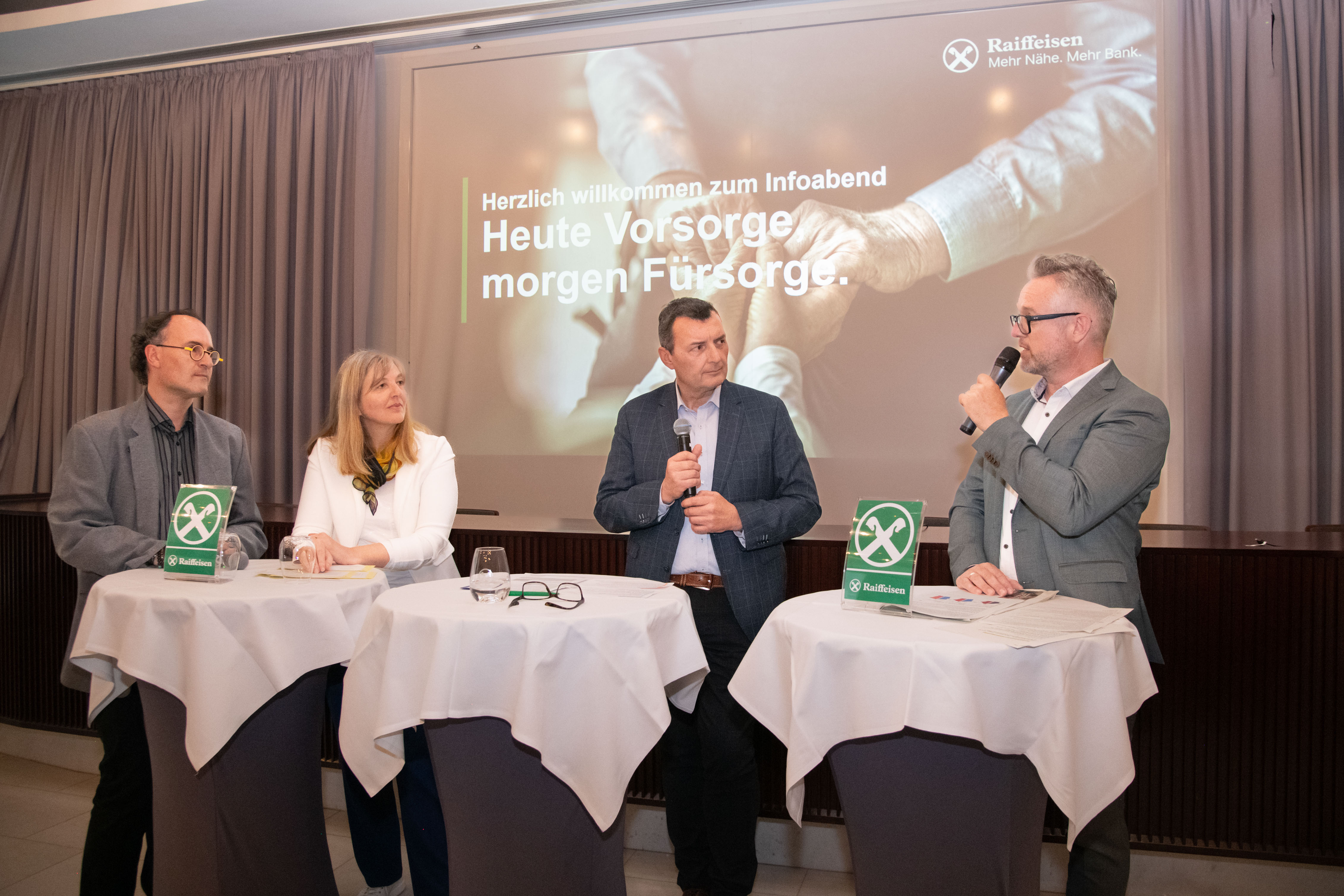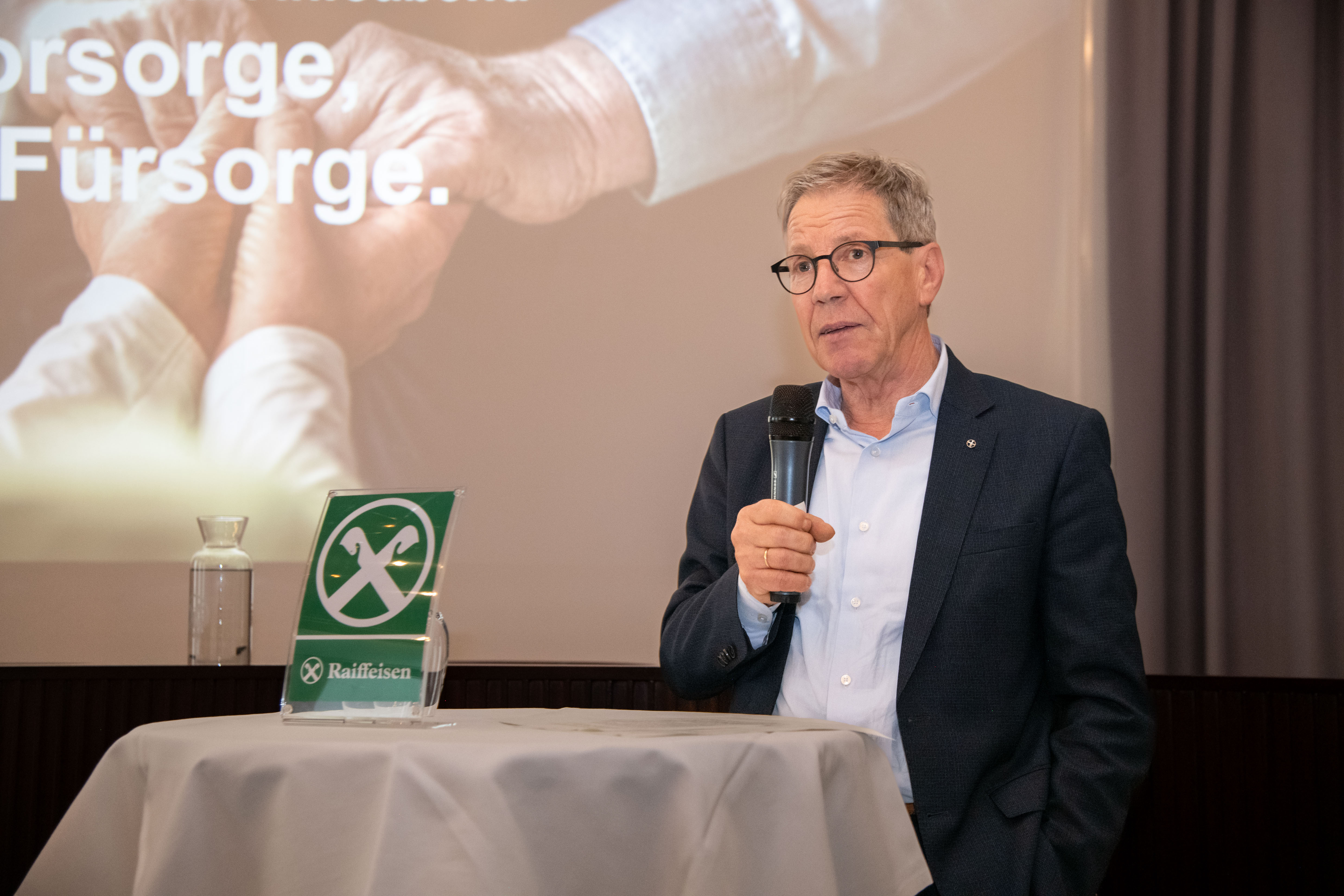 Versicherungsexperte Thomas Gruber vom Raiffeisen Versicherungsdienst stellte die Raiffeisen Pflegeversicherung als Vorsorgelösung vor, um die finanziellen Belastungen im Pflegefall abzufedern. Ein zentrales Anliegen der Diskussionsrunde: Pflege dürfe kein schambehaftetes Tabuthema bleiben. Offene Gespräche in der Familie, frühzeitige Information und klare Entscheidungen seien entscheidend. Ulrich Seitz: „Jeder ist auch Manager seines eigenen Schicksals.“