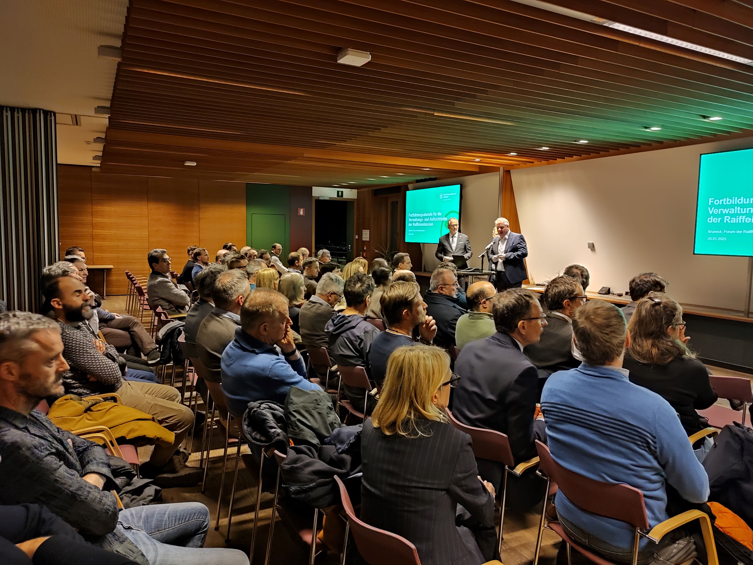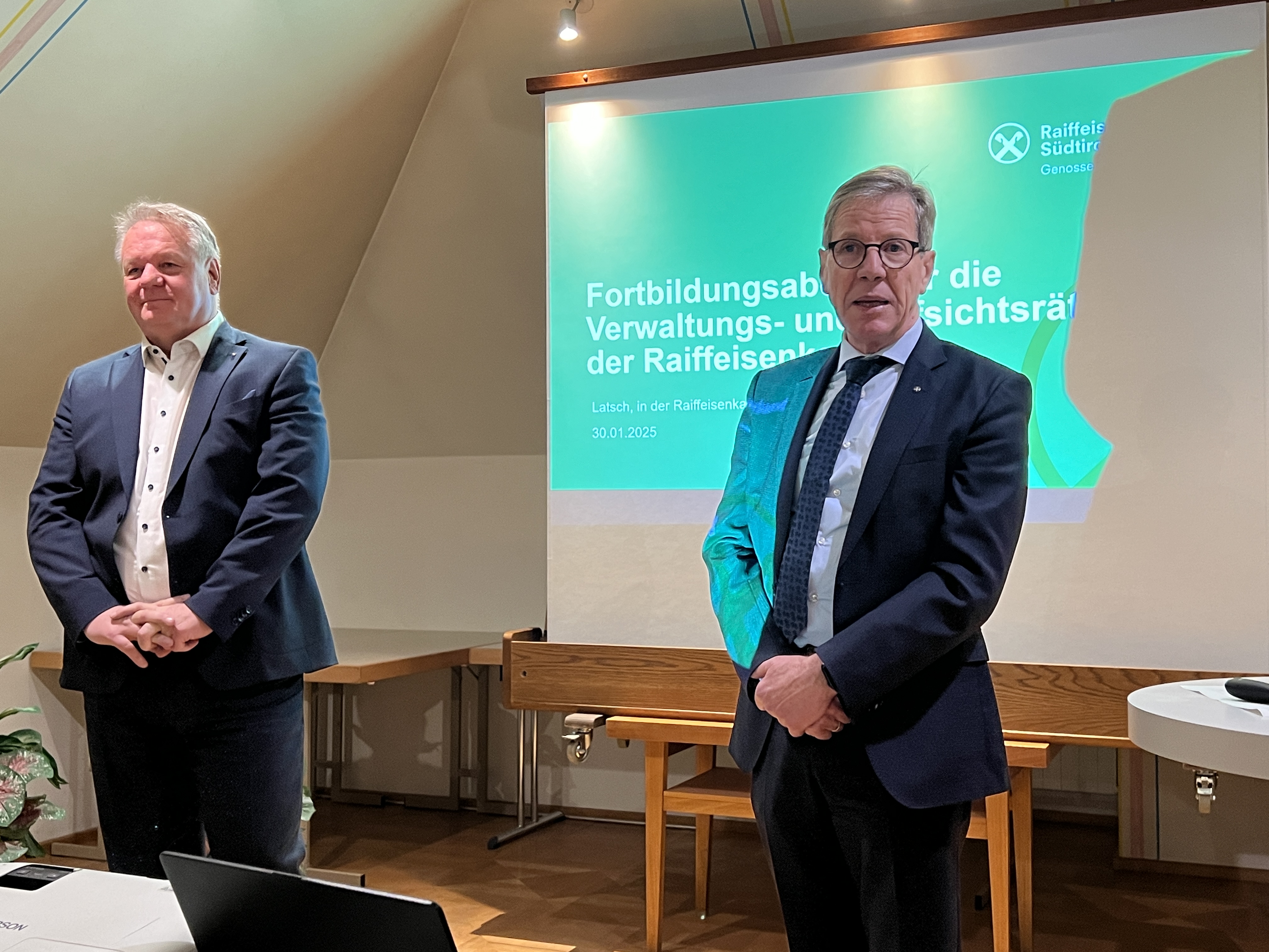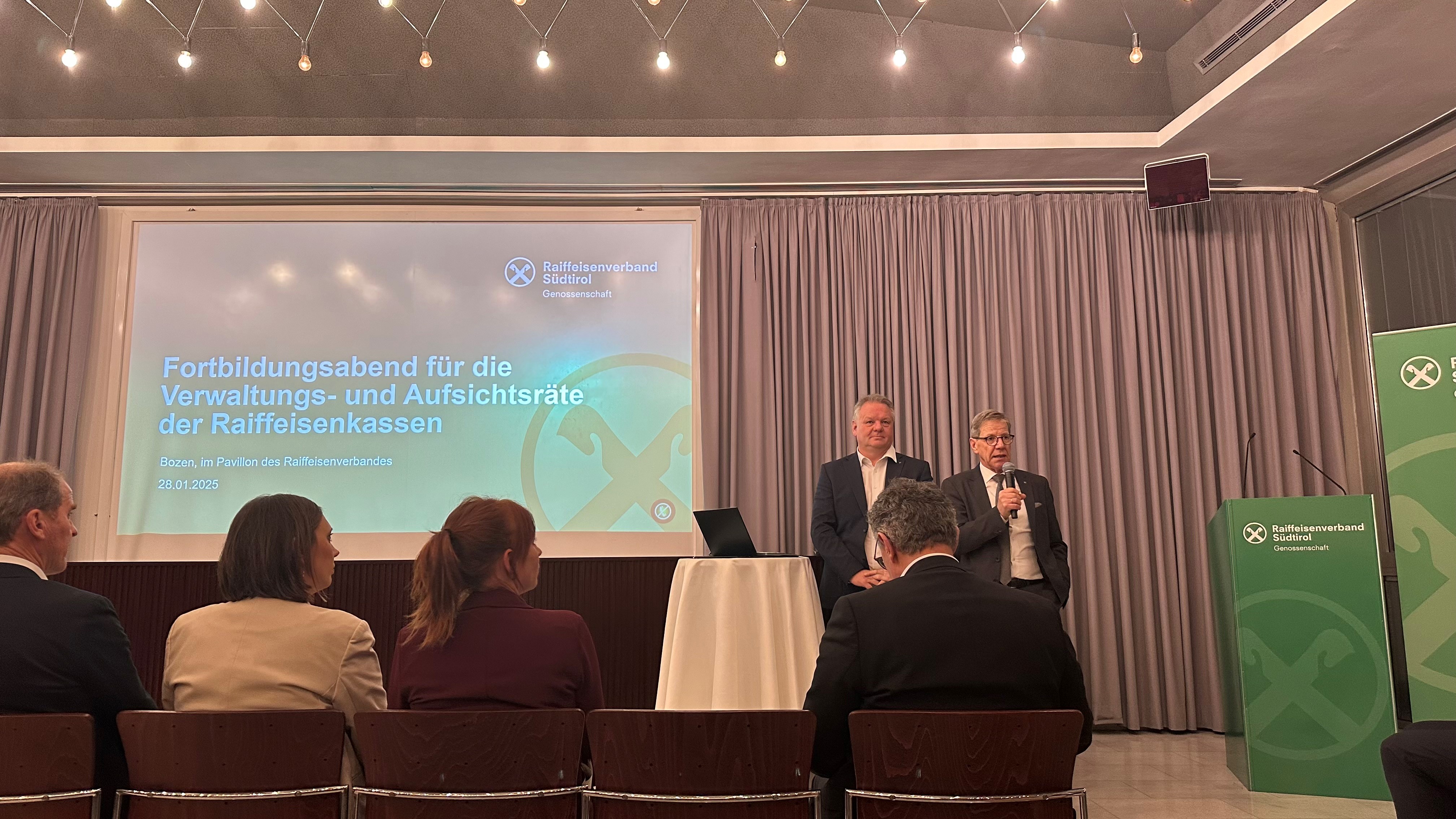 Wie Robert Zampieri, Generaldirektor des Raiffeisenverbandes Südtirol, betonte, sei es die Aufgabe des Verbandes, die Genossenschaften sinnvoll und effizient bei der Professionalisierung der Mandatar*innen zu unterstützen: „Angesichts der technischen Disruption und der regulatorischen Anforderungen ist uns ein hoher Wissensstand zu den Themen, die unsere Genossenschaftsbanken betreffen, wichtig.“