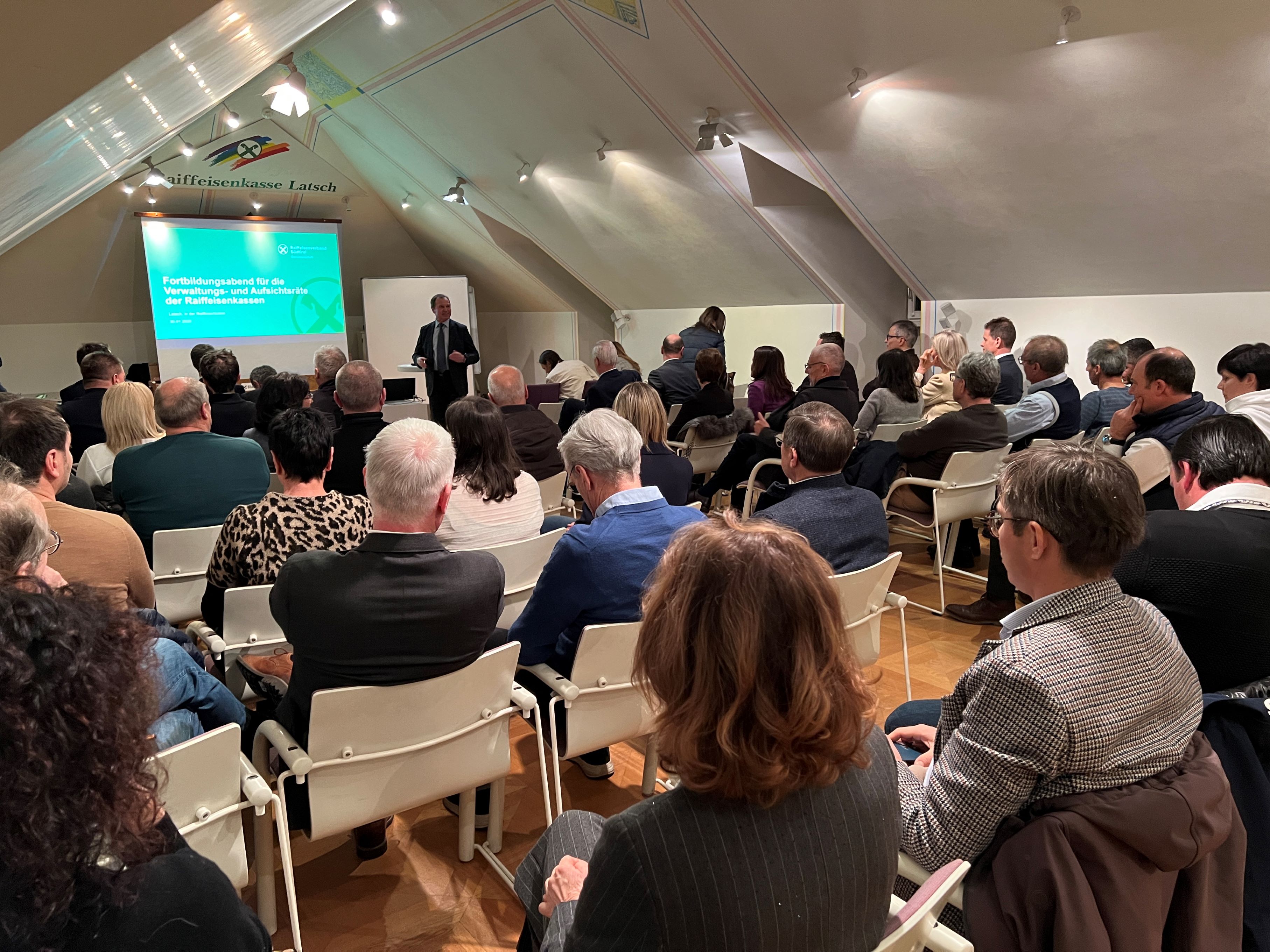 Als Fachverband der 39 Südtiroler Raiffeisenkassen veranstaltet der Raiffeisenverband Südtirol in Zusammenarbeit mit der Raiffeisen Landesbank, der Raiffeisen Information Service und der Trägerkörperschaft des Raiffeisen Südtirol IPS regelmäßig Veranstaltungen zur fachlichen Aus- und Weiterbildung. Im Rahmen dieser Veranstaltungen geben zahlreiche Referent*innen Einblick in die aktuellen Entwicklungen des Bankensektors. Mit dem gestrigen, ebenfalls sehr gut besuchten Fortbildungsabend am 30. Januar 2025 in Latsch schloss die aktuelle Reihe ab. Ein Drittel der Teilnehmenden waren Frauen – ein klares Zeichen dafür, dass deren Interesse an einer aktiven Mitgestaltung in den Genossenschaftsorganen weiterwächst.