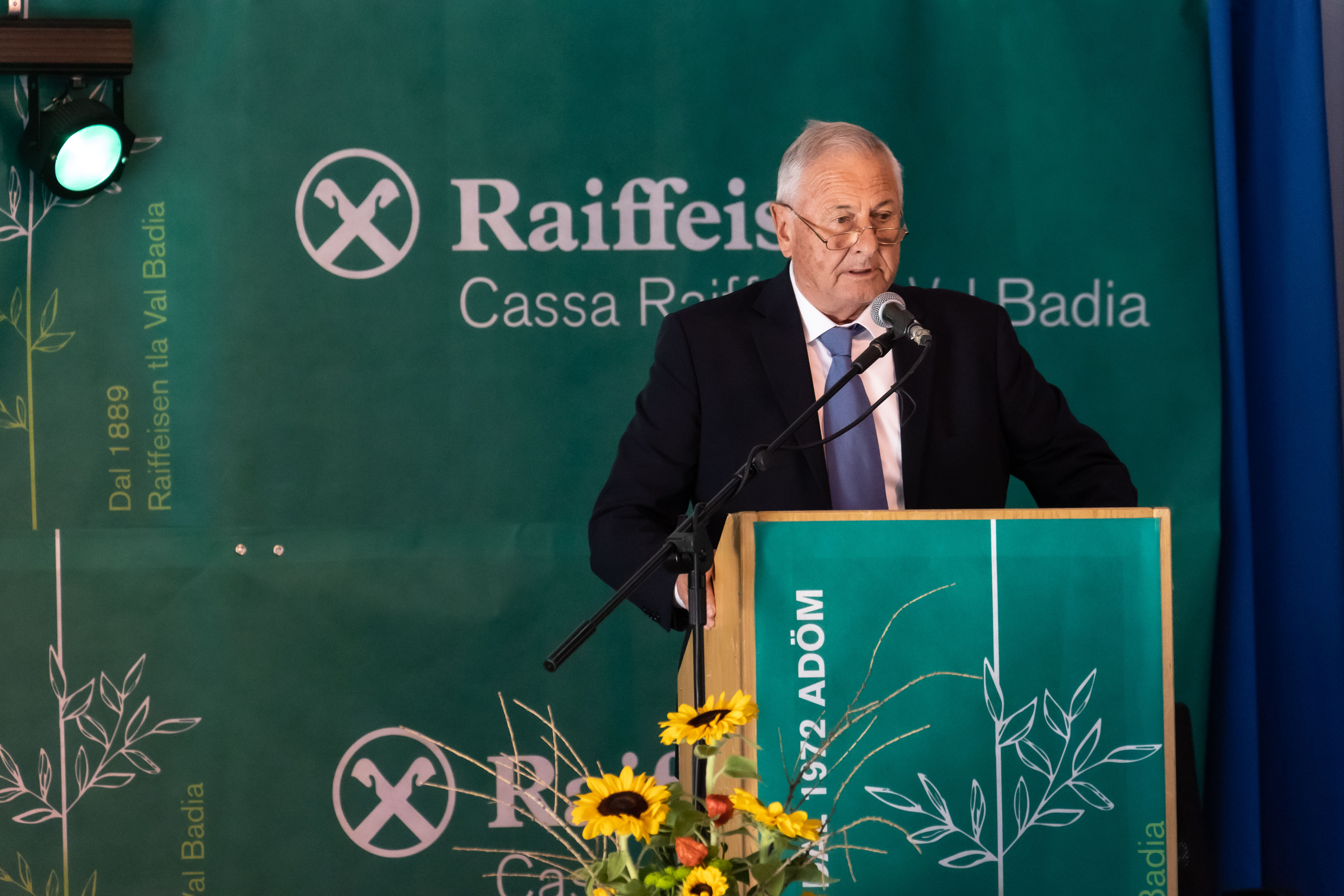 Generaldirektor des Raiffeisenverbandes Paul Gasser sprach zum Thema "Raiffeisen – ein Mehrwert für ganz Südtirol". Er bezeichnete die Geschichte der Cassa Raiffeisen Val Badia als eine Erfolgsgeschichte und verwies insgesamt auf den Erfolg der Raiffeisenkassen in Südtirol, die den Nutzen und die Förderung der Gemeinschaft im Blickfeld haben. Heute decken die 39 autonomen Raiffeisenkassen die Hälfte des Kredit- und Einlagenmarktes in Südtirol ab, zählen an die fünfundsiebzigtausend Mitglieder und fördern Verbände, Vereine und Organisationen mit Beiträgen in Höhe von 14 Millionen Euro im Jahr.