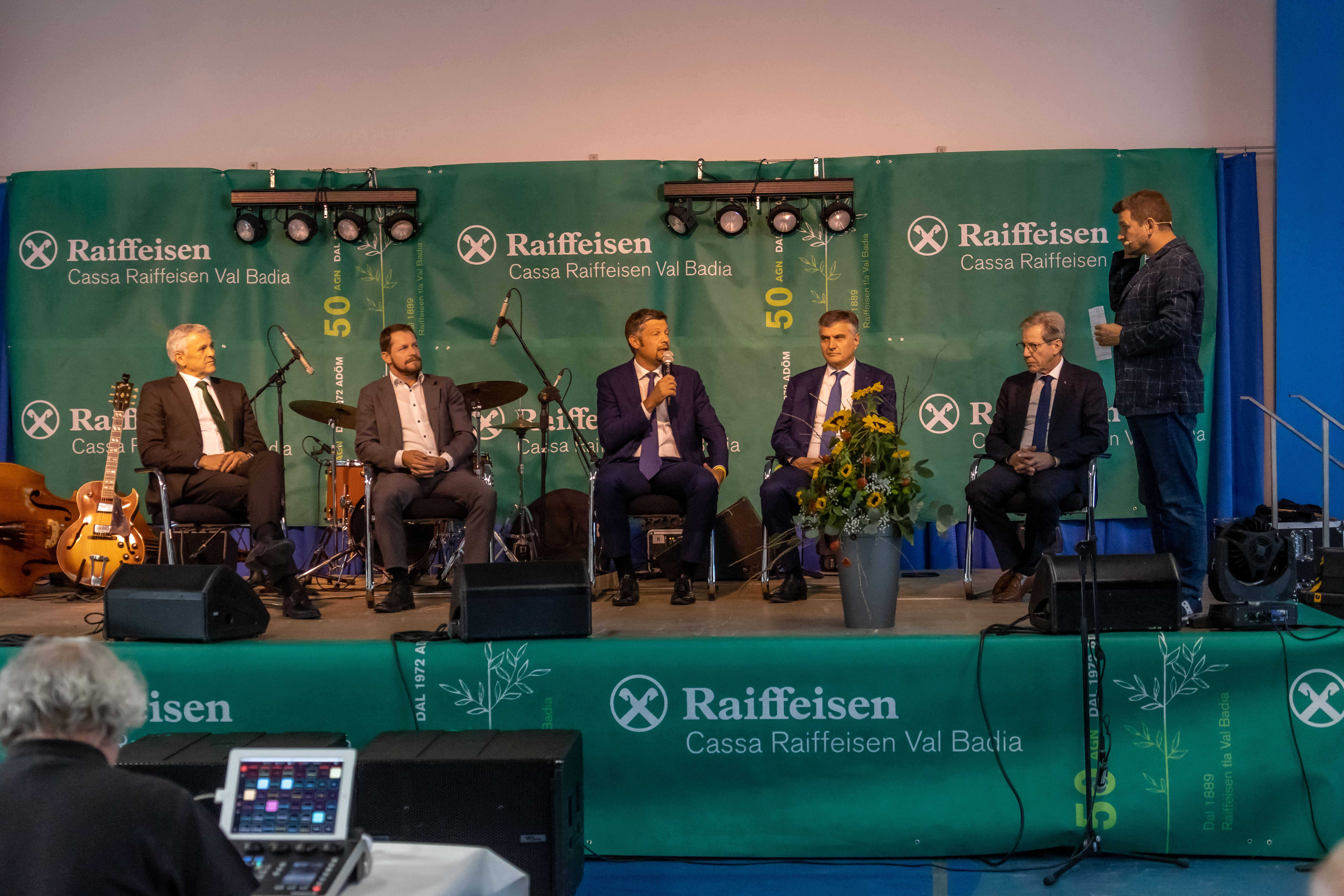 1889 gründete Pfarrer Ujöp Dasser in Rina/Welschellen den ersten Spar- und Darlehenskassenverein Südtirols. Eine Vorreiterrolle spielte das Gadertal auch 1972. Damals schlossen sich erstmals in Südtirol mehrere Raiffeisenkassen zusammen. Anfang Oktober wurde die vor 50 Jahren erfolgte Fusion der örtlichen Raiffeisenkassen zur Cassa Raiffeisen Val Badia gemeinsam mit Mitgliedern, Mitarbeiterschaft und Ehrengästen aus Politik und Wirtschaft in der Tennishalle von Corvara gefeiert.