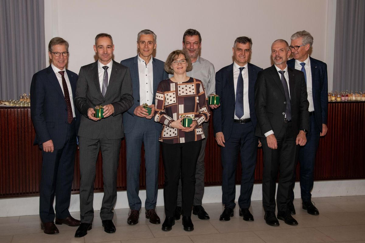 Für 30 Jahre Mitarbeit wurden geehrt: Albrecht Ceol, HA Raiffeisen Informationssystem, Organisationseinheit Software-Entwicklung; Roland Chiminazzo, HA Raiffeisen Informationssystem, Organisationseinheit Software-Entwicklung; Peter Franceschini, HA Raiffeisen Informationssystem, Organisationseinheit Software-Entwicklung; Alois Linter, HA Raiffeisen Informationssystem; Anton Nocker, HA Raiffeisen Informationssystem, Organisationseinheit Service Desk; Edmund Schöpf, HA Raiffeisen Informationssystem, Organisationseinheit Software-Entwicklung; Roswitha Unterhuber, Bereich Personal & Arbeitsrecht, Fachbereich Dienstleistung Personal & Arbeitsrecht; Alois Zuggal, Bereich Interner Support, Fachbereich Handel und interne Dienste