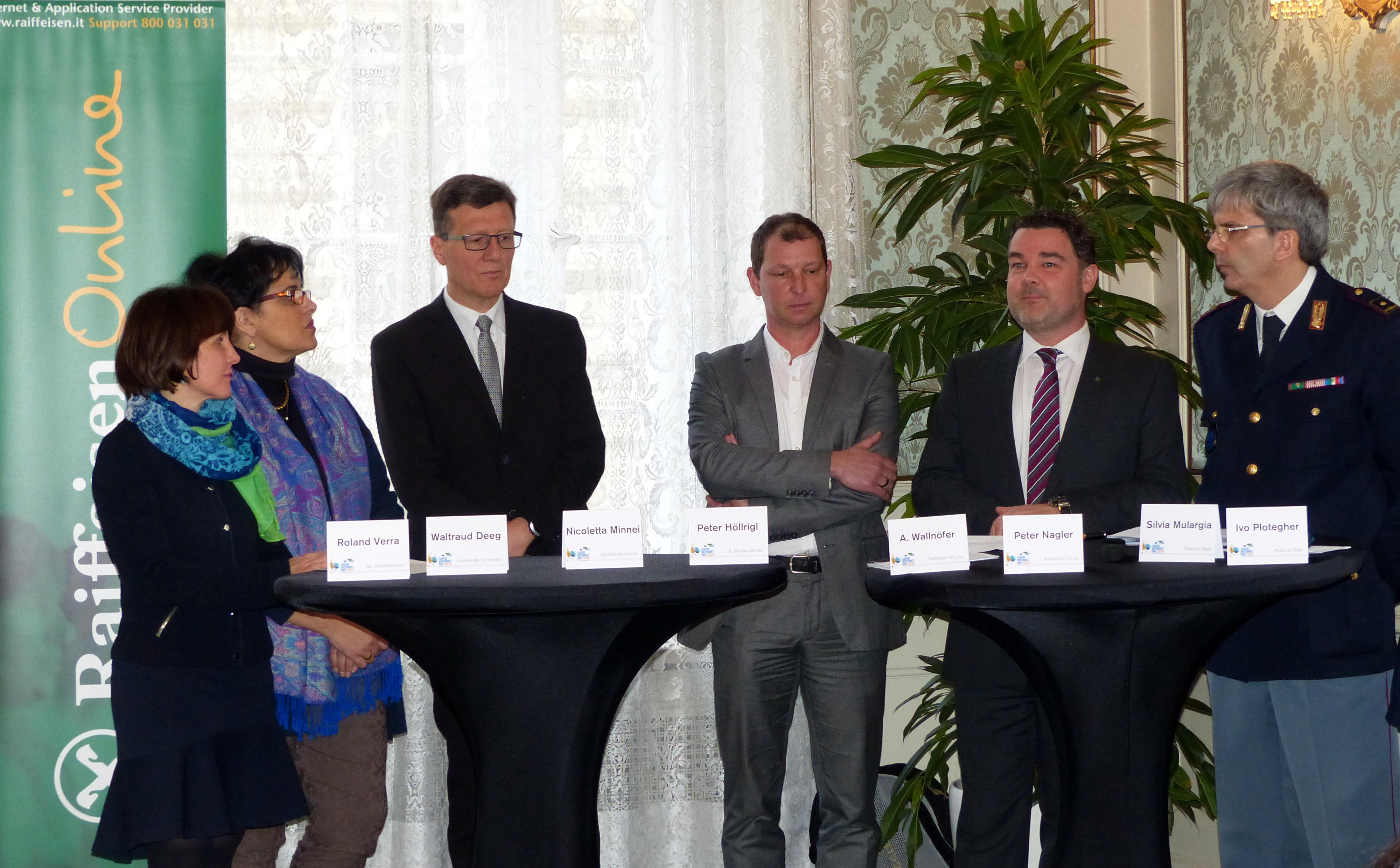 An der Pressekonferenz von Raiffeisen OnLine nahmen auch Familien- und Informatik-Landesrätin Waltraud Deeg sowie die drei Schulamtsleiter Peter Höllrigl, Roland Verra und Nicoletta Minnei teil. „Junge User erleben die digitale Welt mit großer Selbstverständlichkeit und Leichtigkeit“, sagte Deeg. Es sei wichtig, ihnen auch die Risiken bewusst zu machen, die sie dabei eingehen.