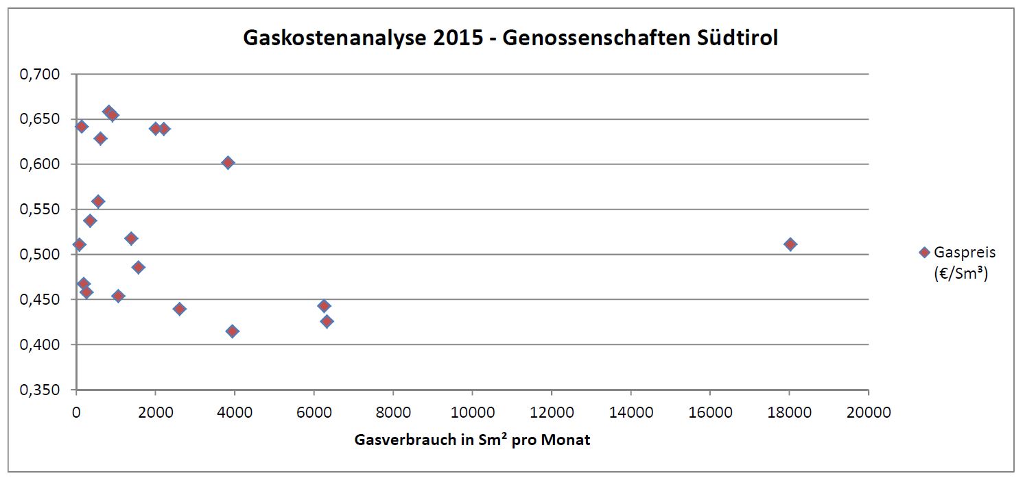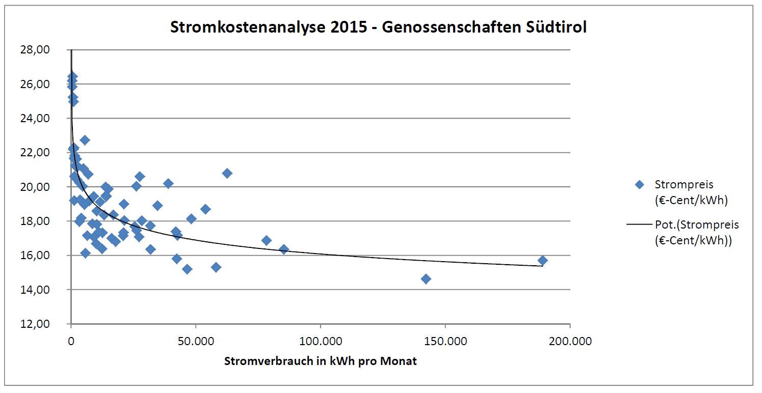 Bereits in der Grafik erkennt man die großen Preisunterschiede der Anbieter auf dem Südtiroler Markt. Eine genaue Analyse der eigenen Vertragsbestimmungen kann vermeidbare Kosten ans Licht bringen.