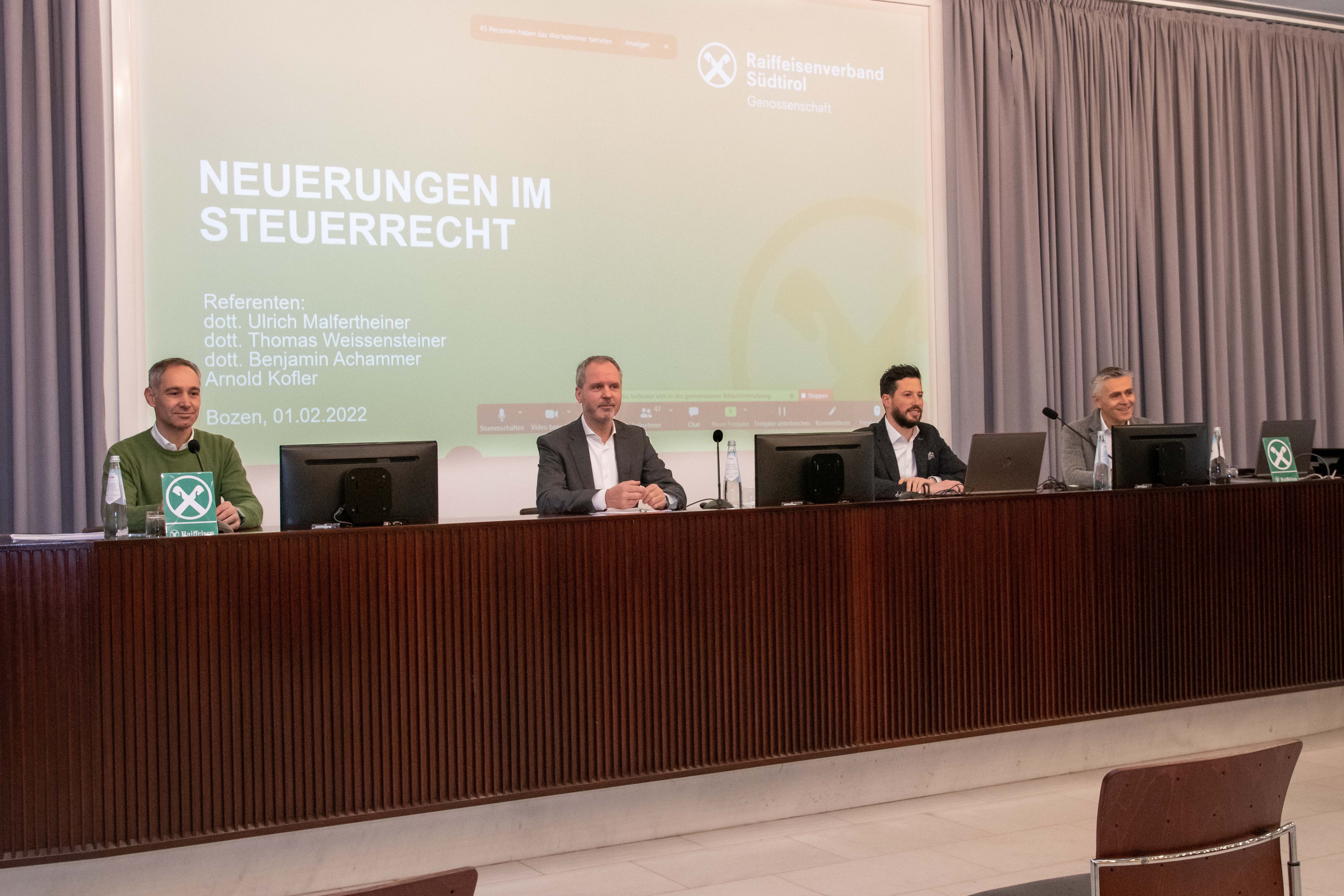 Am 01. Februar fand im Raiffeisenpavillon in Bozen die jährliche Fachtagung „Neuerungen im Steuerrecht“ statt. Rund 160 Vertreterinnen und Vertreter der Waren- und Dienstleistungsgenossenschaften informierten sich online über die aktuellen steuerlichen Neuerungen. Die als Live-Webinar angelegte Veranstaltung fand große Zustimmung.