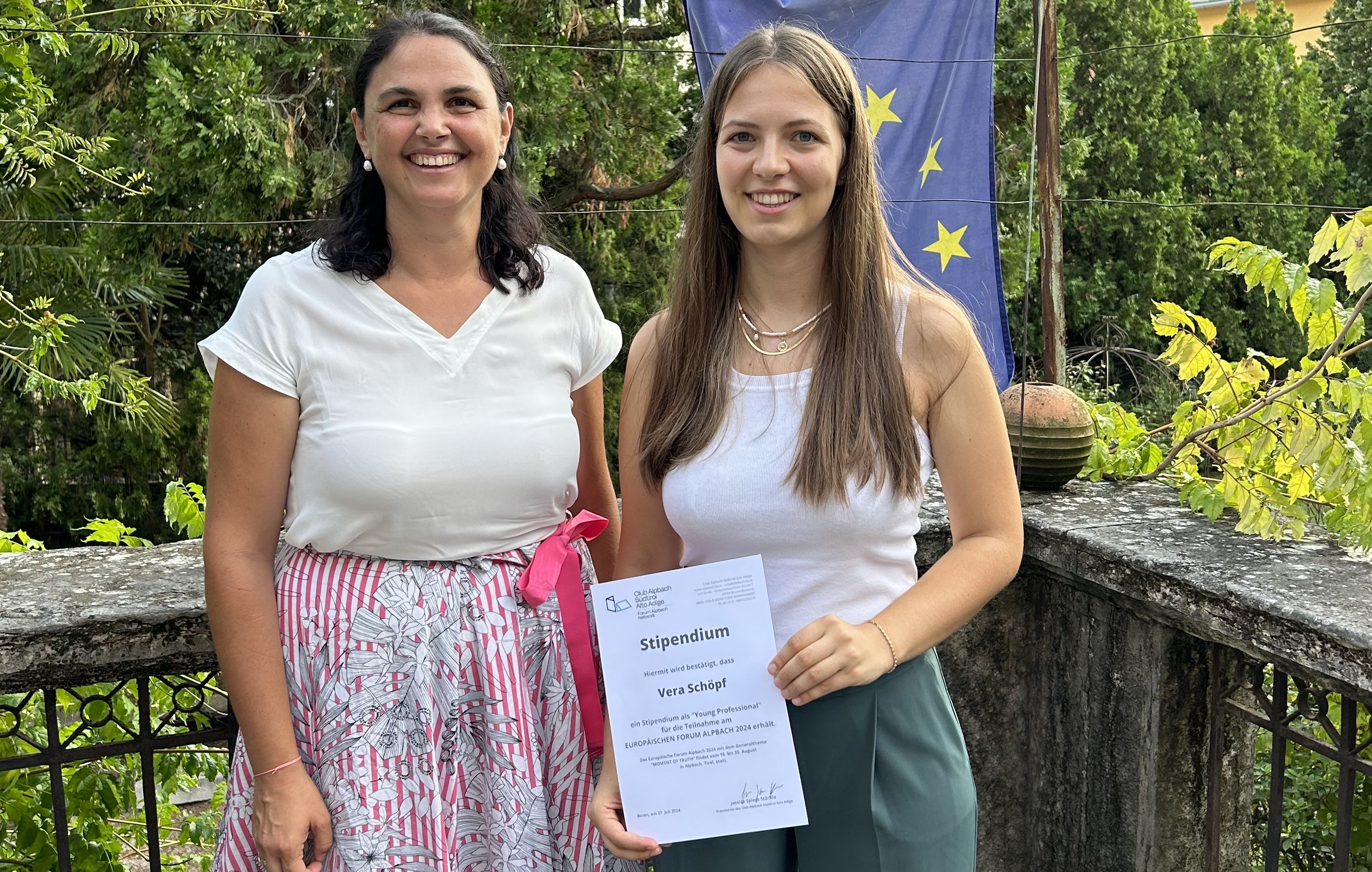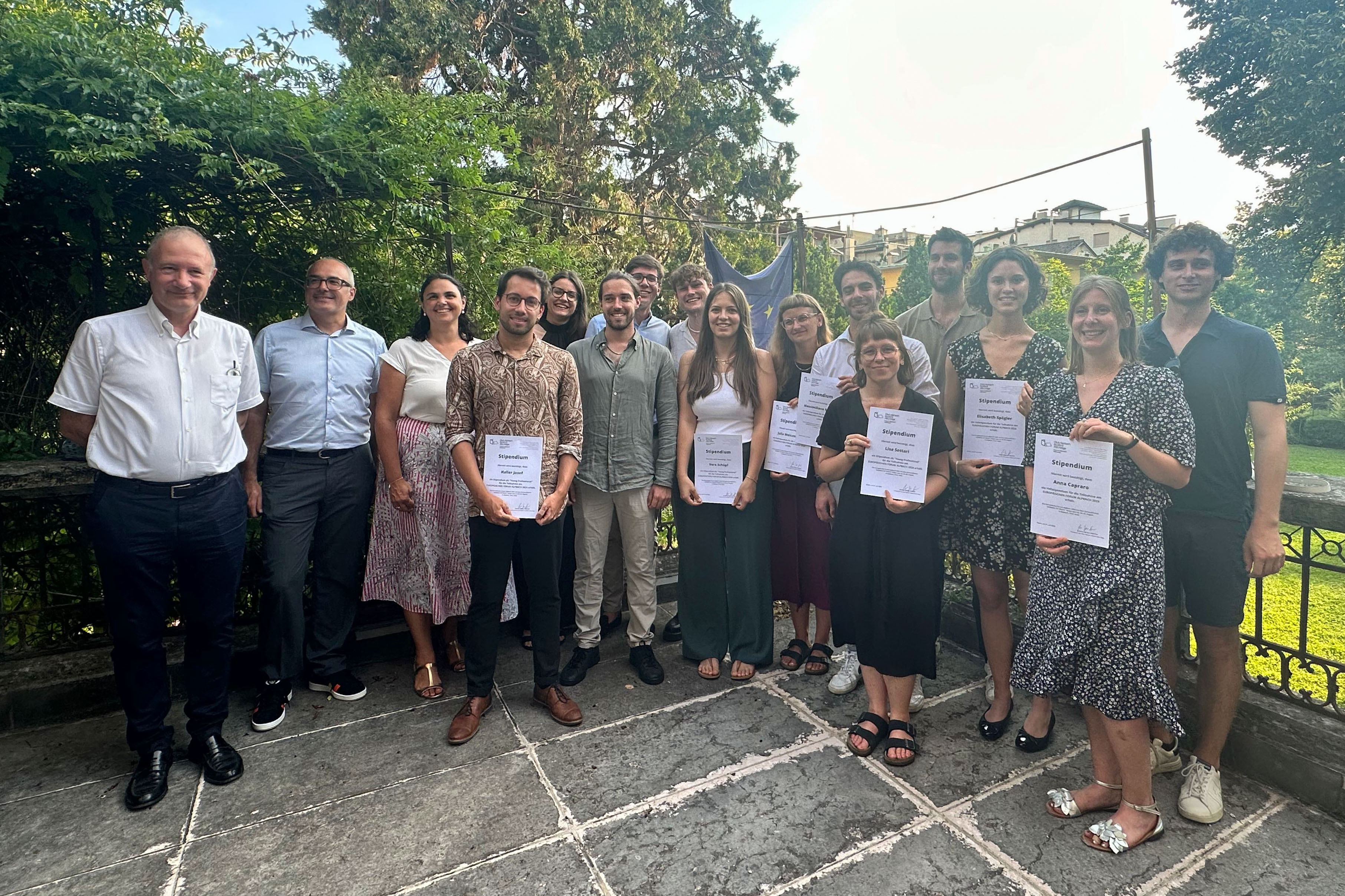 Die Stipendiaten sind Massimo Bocchio, Anna Capraro, Melanie Giovanazzi, Josef Haller, René Hofer, Lars Jakobs, Lisa Settari, Elisabeth Spögler, Anna Unterkircher und Julia Weissteiner und Vera Schöpf. Vera Schöpf arbeitete im Vorjahr als Praktikantin im Raiffeisenverband und hatte bei einer Veranstaltung mit dem Club Alpbach im Raiffeisenhaus in Bozen vom Stipendium erfahren.