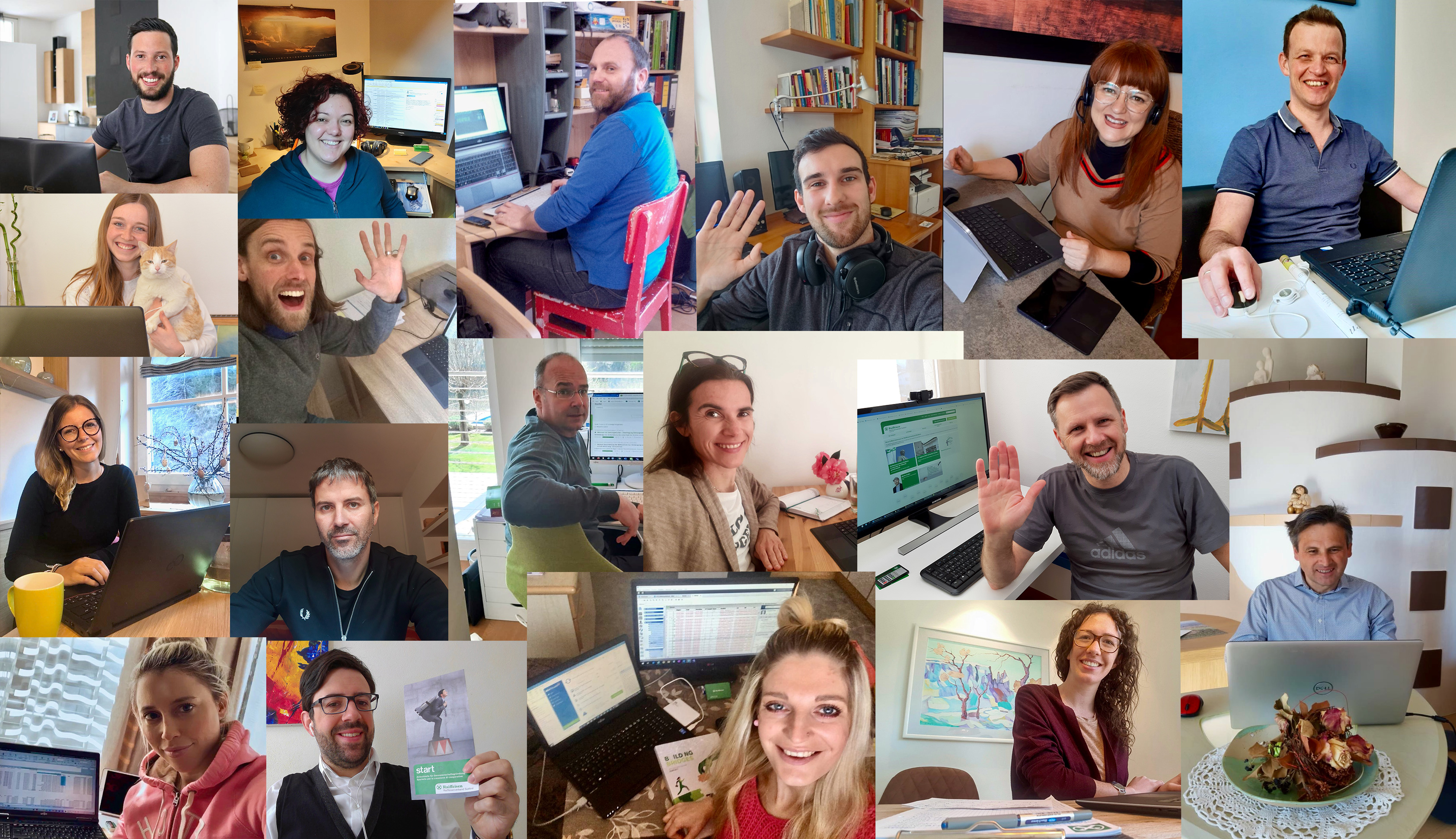Einige der Mitarbeiterinnen und Mitarbeiter des Raiffeisenverbandes, als sie während des ersten Corona bedingten Lockdowns von zu Hause aus arbeiteten. Künftig sollen sie selbst entscheiden können, ob sie einen Teil ihrer Arbeit in Telearbeit verrichten möchten.