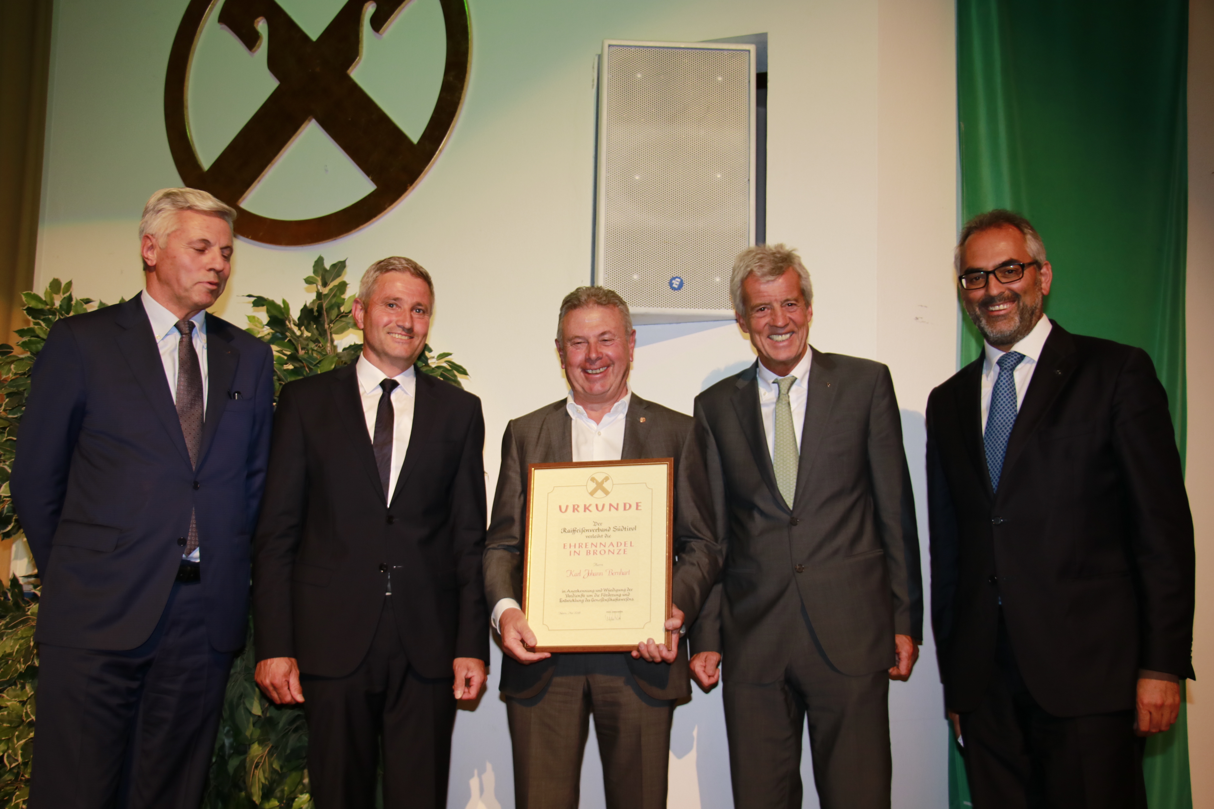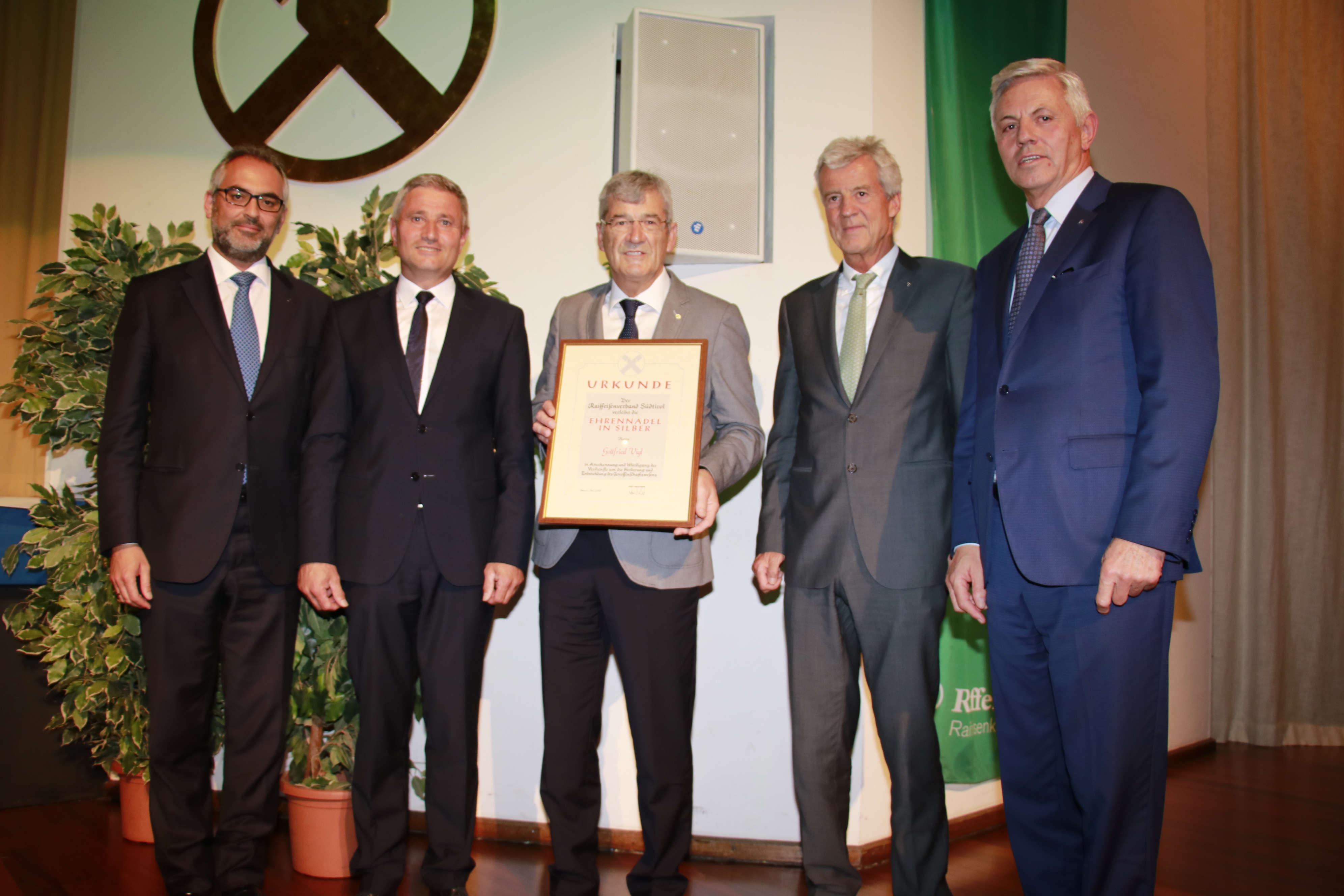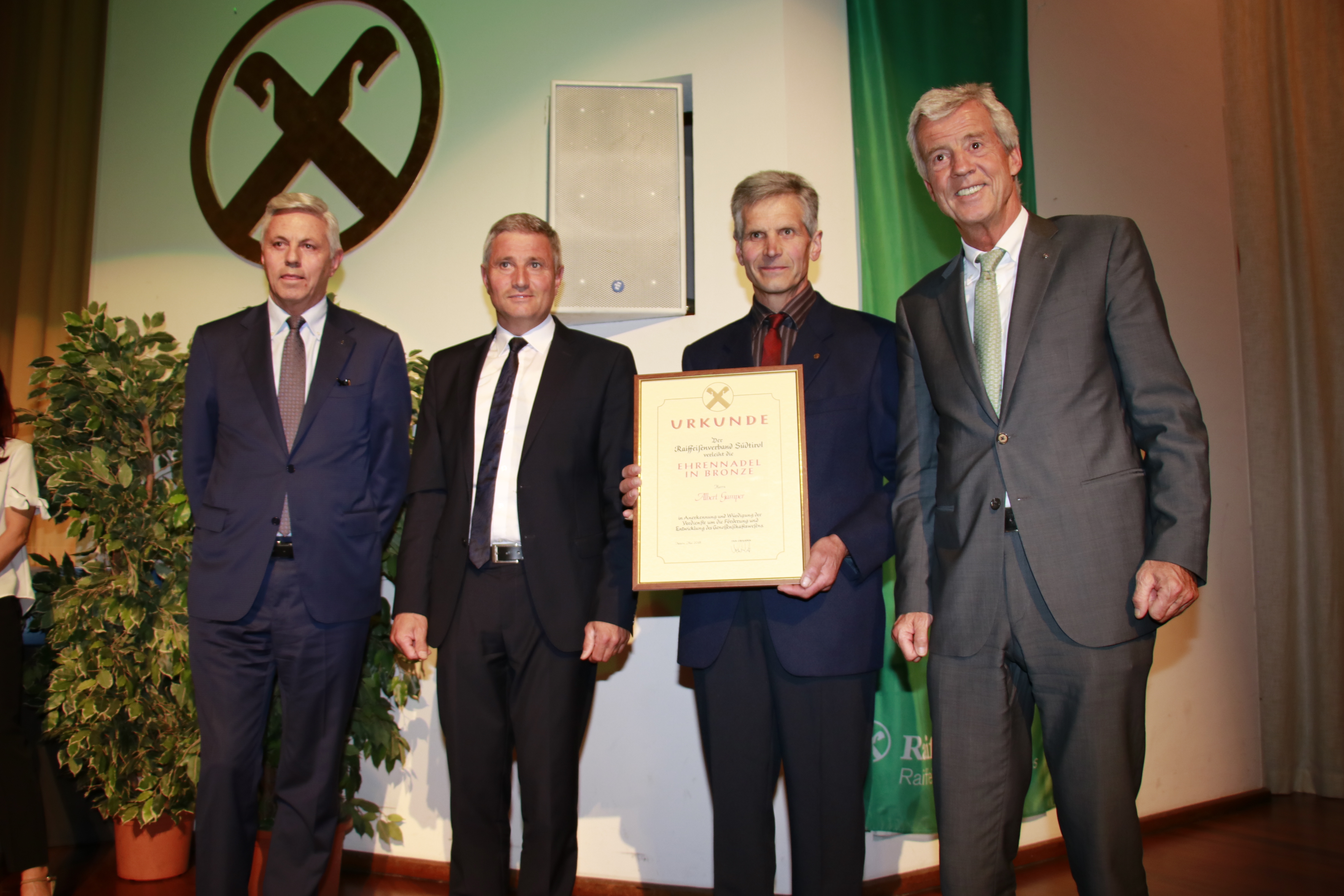 Überreicht wurden die Ehrennadeln von den Obmannstellvertretern des Raiffeisenverbandes Erich Ohrwalder und Robert Zampieri. Sie betonten, dass die vier Geehrten stets zur guten Entwicklung ihrer Raiffeisenkasse beigetragen haben und dabei immer das Wohl der Mitglieder und des jeweiligen Tätigkeitsgebietes im Blick hatten.