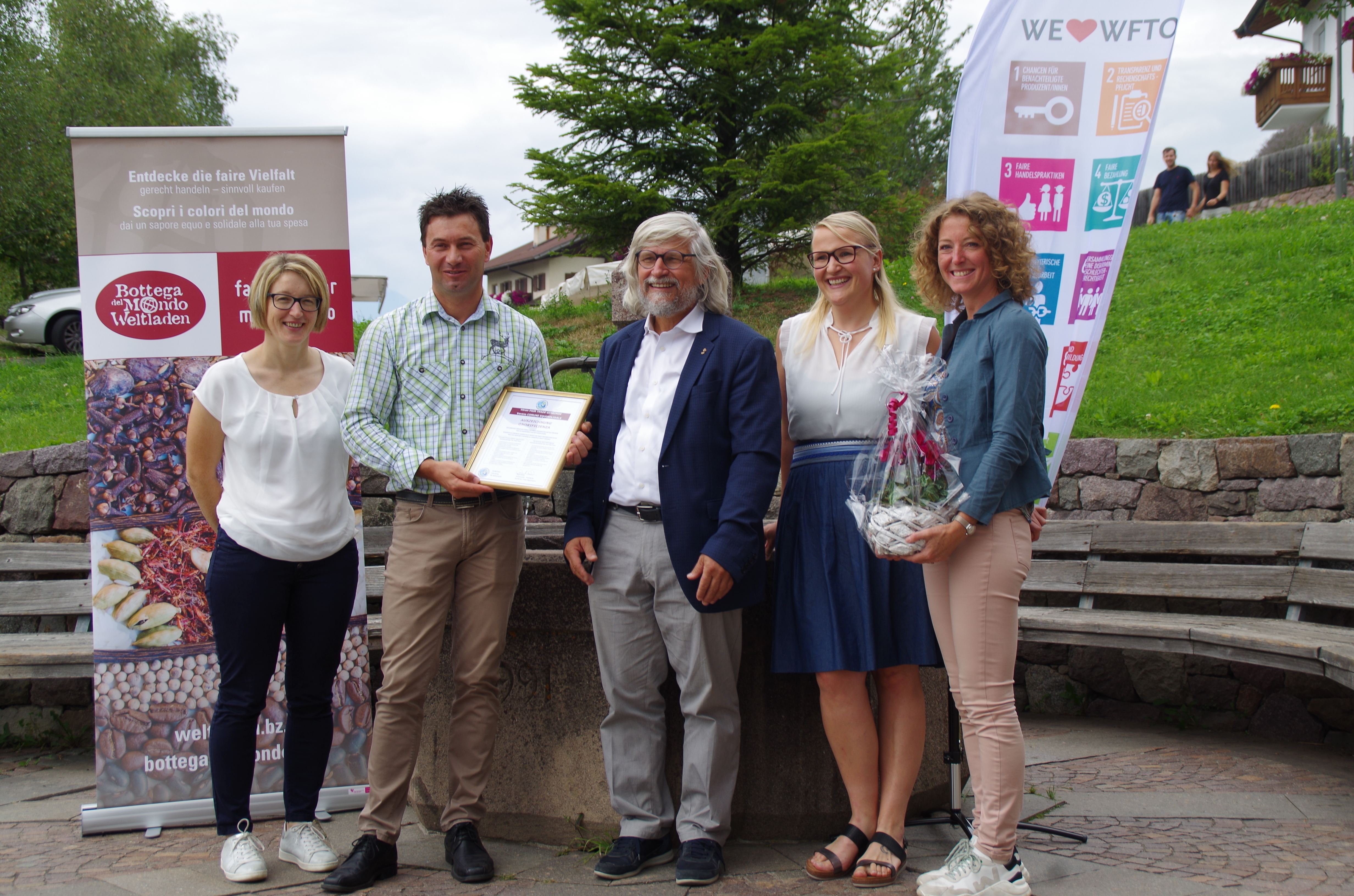 Der Bozner Rudi Dalvai, seit 2011 Präsident der World Fair Trade Organization WFTO, überreichte dem Vöraner Gemeindeausschuss das entsprechende Zertifikat. Er wünschte den Gemeindepolitikern, auch weiterhin global zu denken und verantwortungsbewusst lokal zu handeln.