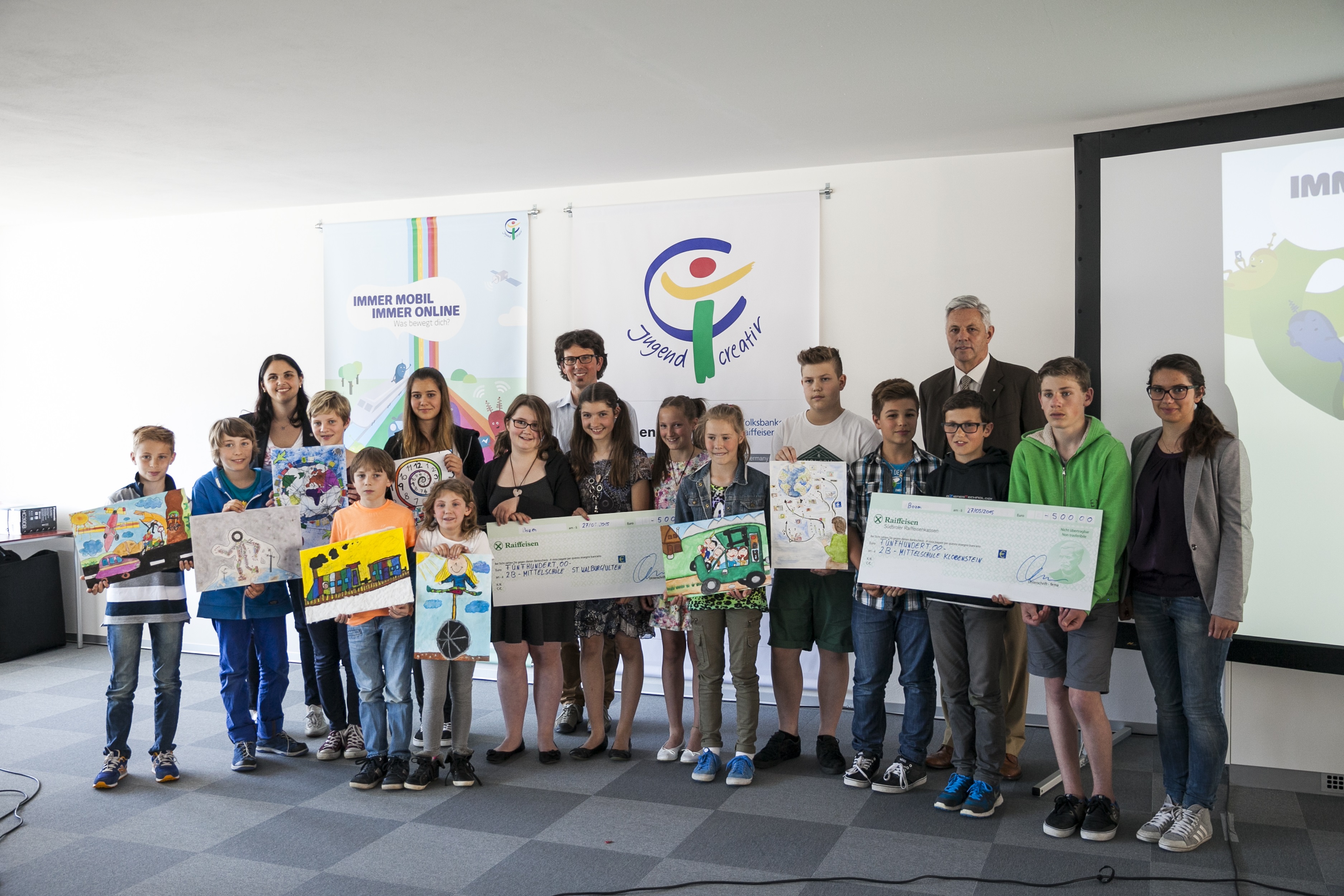 "Immer mobil, immer online - was dich bewegt". So lautete die Vorgabe zum 45. Internationalen Raiffeisenjugendwettbewerb, die heuer an die Schüler Südtirols gerichtet wurde. Es ging um kreative Ansätze zur Vorstellung, wie die Mobilität der Zukunft aussehen könnte. Von Januar bis März dieses Jahres konnten diese Bilder zum Thema einsenden. Unter den eingegangenen 12.000 Bildern und Projekten wurden so in den verschiedenen Kategorien die drei Erstplatzierten prämiert. Die Werke der Sieger werden zur internationalen Prämierung in Berlin weitergeleitet.