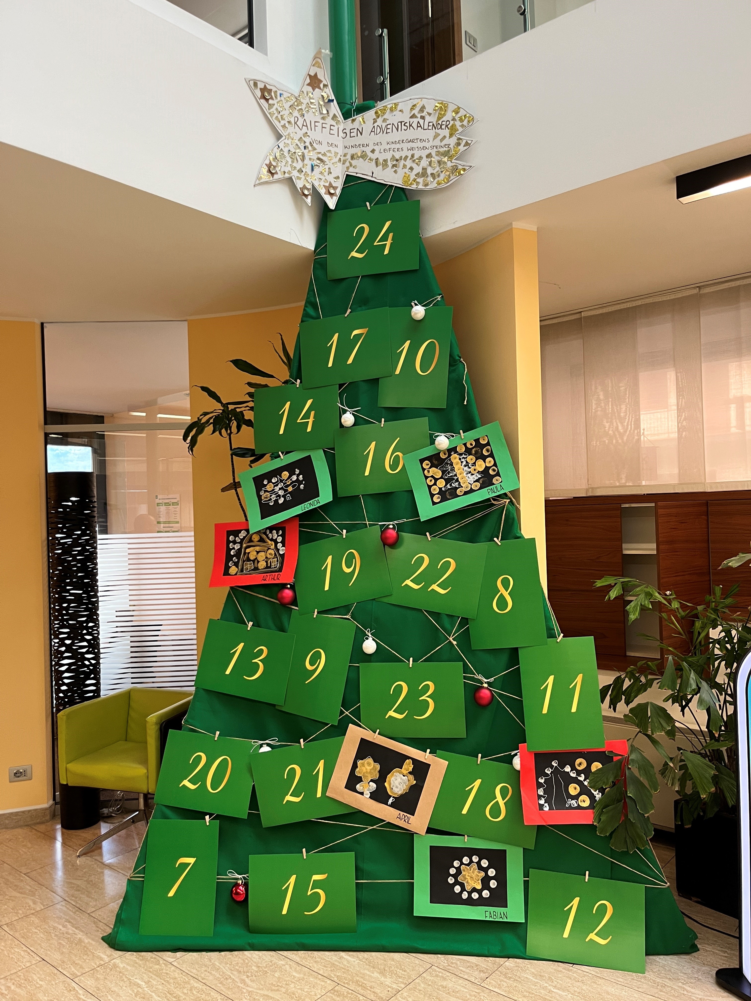 Für eine besondere Weihnachtsstimmung sorgen auch die Adventkalender in mehreren Geschäftsstellen, die in Zusammenarbeit mit den lokalen Kindergärten errichtet wurden.