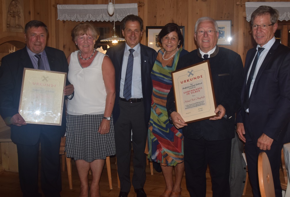 Michael Mayrhofer hat insgesamt 54 Jahre der Raiffeisenkasse Algund gedient und dabei Akzente gesetzt. Mit 17 Jahren trat er 1963 als Mitarbeiter ein. Am 1. März 1973 wurde er zum Direktor ernannt. Eine Aufgabe, die er 27 Jahre bis 31. Juli 2000 mit Begeisterung ausgeübt hat. Innovativ und zielstrebig hat er die Raiffeisenkasse in eine Spitzenposition gebracht und 1980 zur größten unter den 55 Raiffeisenkassen gemacht. In den Achtzigerjahren war Michael Mayrhofer auch federführend bei Gründung der "Entwicklungsgenossenschaft Gratsch" tätig. Und "genossenschaftlich" ging es auch nach seiner Laufbahn als Bankdirektor weiter, als er im Jahr 2000 zum Obmannstellvertreter der Raiffeisenkasse Algund gewählt wurde. Ein Amt, das er bis heuer im April ausgeübt hat. Neben der Raiffeisenkasse war Mayrhofer von 2003 bis 2015 auch als Verwaltungsrat des Raiffeisenverbandes tätig und im dortigen Koordinierungsausschuss der Raiffeisen Geldorganisation tätig. Michael Mayrhofer erhielt die Raiffeisen-Ehrennadel in Silber.