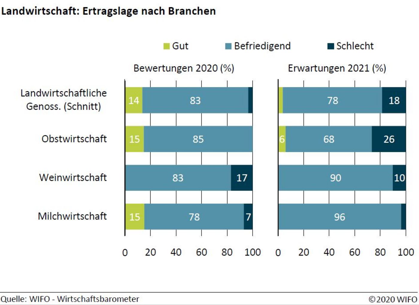 Die Ernte 2020 war durch einen geplanten Produktionsrückgang von etwa 10 bis 15 Prozent im Vergleich zum Vorjahr gekennzeichnet. Dies ist auf die Entscheidung zurückzuführen, den Ertrag der Weinberge zu reduzieren, um die Preise zu stützen. Die Qualität wird hingegen von den Kellermeistern auf dem Niveau der letzten Jahre beurteilt, trotz der oft schwierigen Witterungsbedingungen. Für 2021 wird eine Besserung der Ertragslage erwartet, allerdings auf bescheidenem Niveau: Zehn Prozent der Kellereien rechnen weiterhin mit einem unbefriedigenden Betriebsergebnis.
