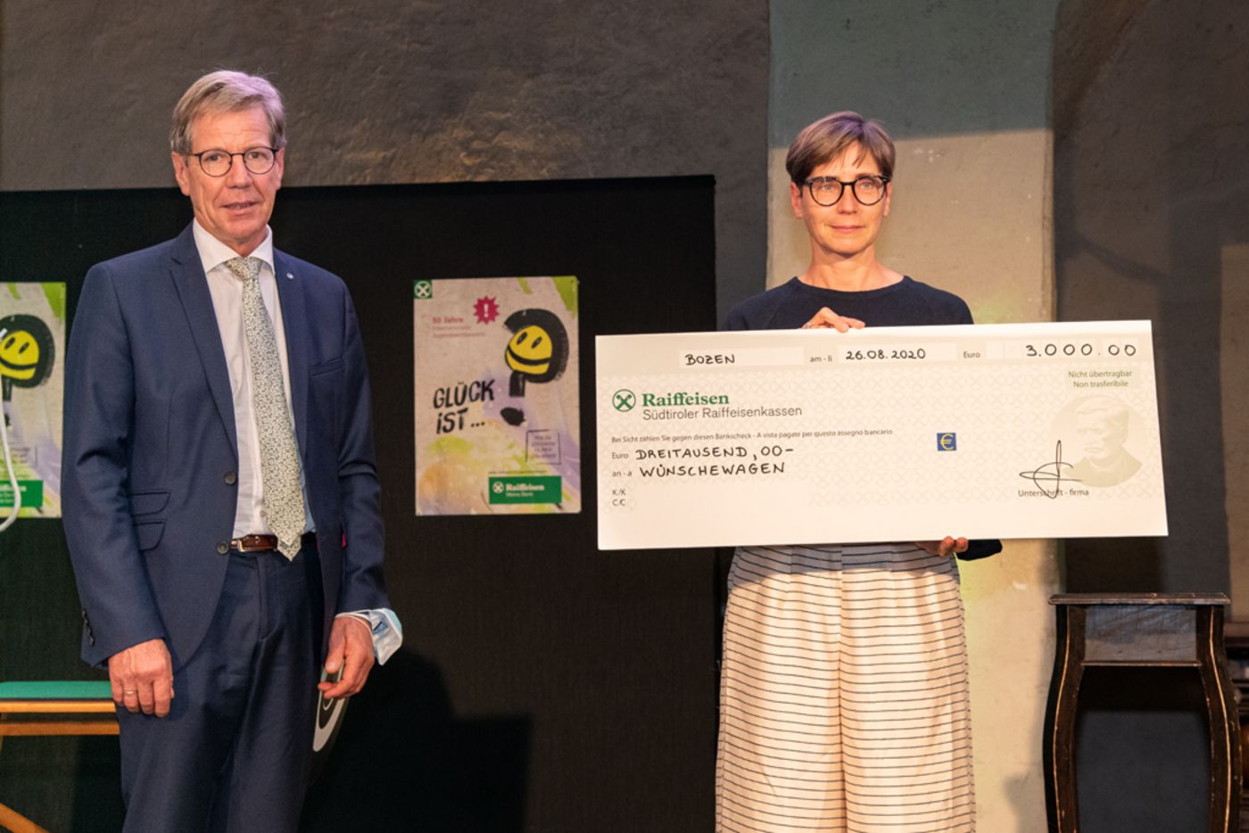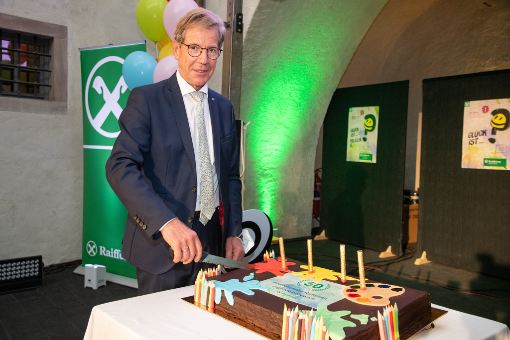 Aus der Vielzahl der kreativen Werke hat die Jury die besten ausgewählt. Evi Gasser, bekannte Kinderbuch-Illustratorin aus Kastelruth, ist langjähriges Mitglied der Jury: „Ich finde es wichtig die Kreativität von Kindern zu fördern. Ein Malwettbewerb motiviert Kinder, und zwar nicht nur, weil es dabei Preise zu gewinnen gibt.“ Die Preisverleihung – wie immer der Höhepunkt der Veranstaltung - nahm Herbert Von Leon, Obmann des Raiffeisenverbandes Südtirol, vor. In seiner Ansprache betonte er, wie wichtig ein Leben in gegenseitiger Verantwortung sei: „Wir als Genossenschaftsbanken wollen unseren Beitrag dazu leisten, dass junge Menschen gesellschaftliche Zusammenhänge verstehen. Sie sollen mit Ideen und Fantasie durchs Leben gehen und ihre Zukunft als kreative Herausforderung begreifen.“ In diesem Jahr konnten sich die Kinder und Jugendlichen über individuelle Preise freuen, die sie anhand einer vorgegebenen Prämie selbst aussuchen konnten. Alle Teilnehmer am Wettbewerb tätigen mit jeder eingereichten Arbeit symbolisch eine Spende, die die Südtiroler Raiffeisenkassen in Geld umwandeln. Heuer ist dabei die Summe von 3.000 Euro zusammengekommen. Obmann Herbert Von Leon überreichte der Vertreterin der Caritas, Agnes Innerhofer, den Spenden-Scheck für das Projekt „Wünschewagen“, ein Gemeinschaftsprojekt vom Landesrettungsverein Weißes Kreuz und der Caritas Diözese Bozen-Brixen, bei dem es darum geht, schwerkranken Menschen einen letzten Wunsch zu erfüllen.