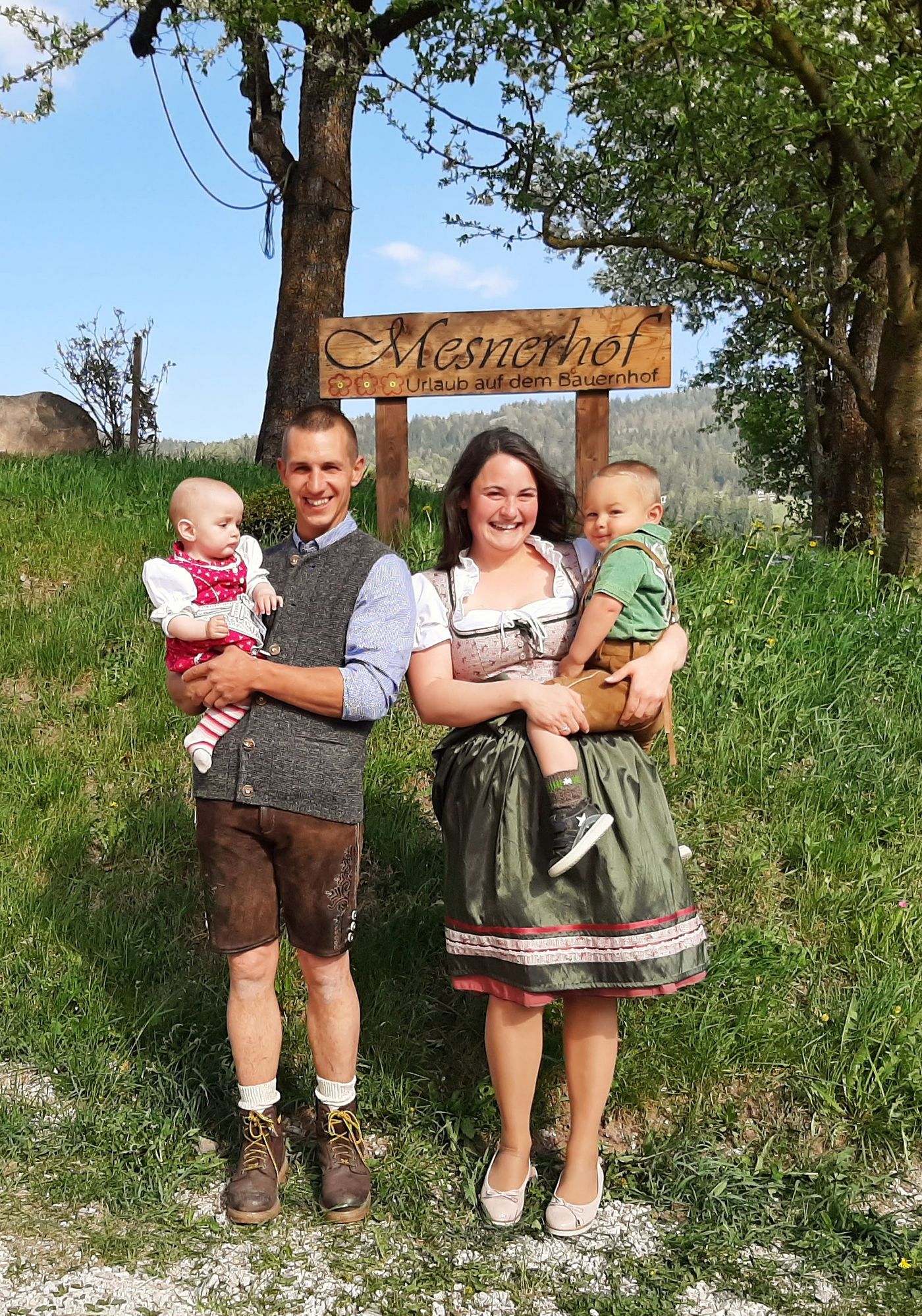 Mit dem Raiffeisen-Jungbergbauernpreis ausgezeichnet (v.l.): Fabian Egger mit Sohn Jonas und Daniela Kuen mit Tochter Nathalie.