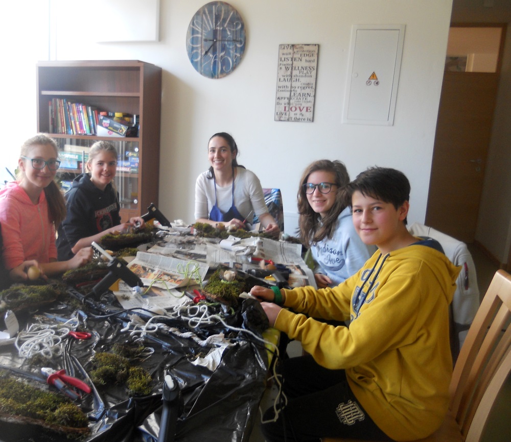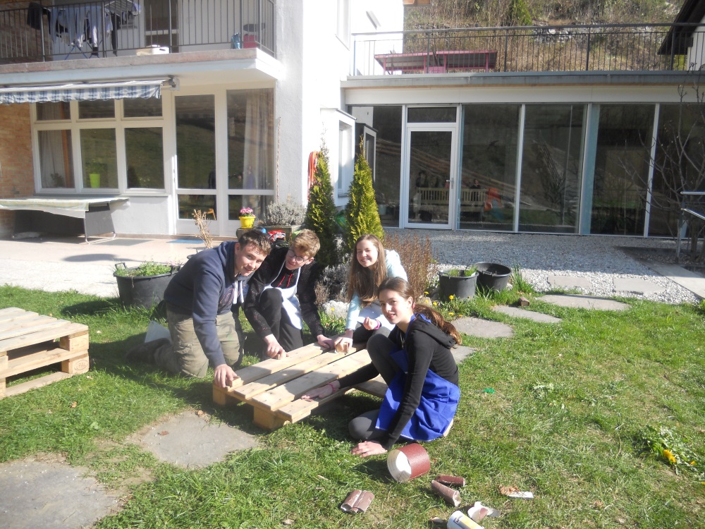 Heute streichen die Schüler und Schülerinnen den Zaun des Hasengeheges in bunten Farben, basteln für alle Häuser Osterdekorationen und schleifen Holzpalletten ab, damit man daraus eine Sitzgelegenheit für eine Terrasse machen kann. "Es ist toll zu sehen mit welchem Einsatz und welcher Freude die Schüler bei der Sache sind! Am Nachmittag werden sie noch mit den Betreuten einige Spiele spielen", freut sich der Erzieher des Kinderdorfes Georg Profanter, der die Klasse unterstützt.