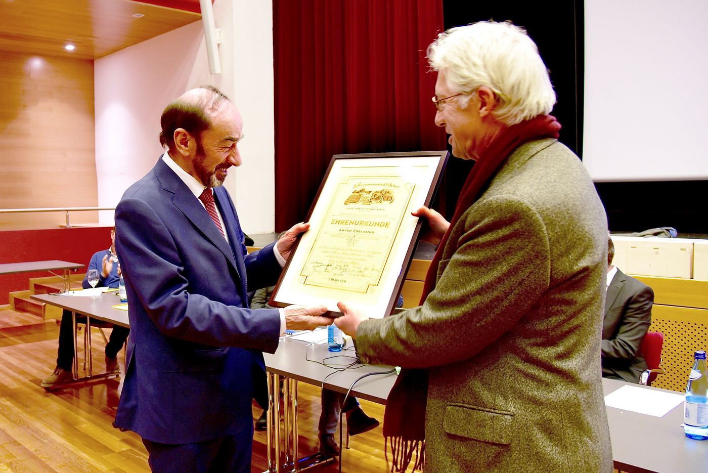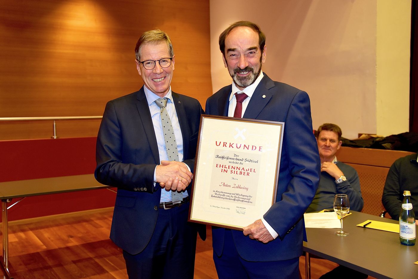 Carl Philipp Baron Hohenbühel, Mitglied der Kellerei, skizzierte in seiner Laudatio die Persönlichkeit Anton Zublasings. Zielbewusst, marktbewusst und immer hinterfragend nach dem richtigen Weg habe sich die Kellerei unter Obmann Anton Zublasing das Qualitätsdenken zur Devise gemacht. Gemeinsam mit Kellermeister Hans Terzer und Verkaufsleiter Günther Neumair bildete Zublasing ein erfolgreiches Dreigestirn. „Anton Zublasing hat sich stets bedingungslos für die Kellerei eingesetzt und dabei immer optimistisch, diplomatisch und mit strategischer Weitsicht agiert. Seine Verdienste in der Weinwirtschaft sind unbestritten“, sagte Baron Hohenbühel, der Obmann Zublasing im Namen der Mitglieder eine Urkunde überreichte.