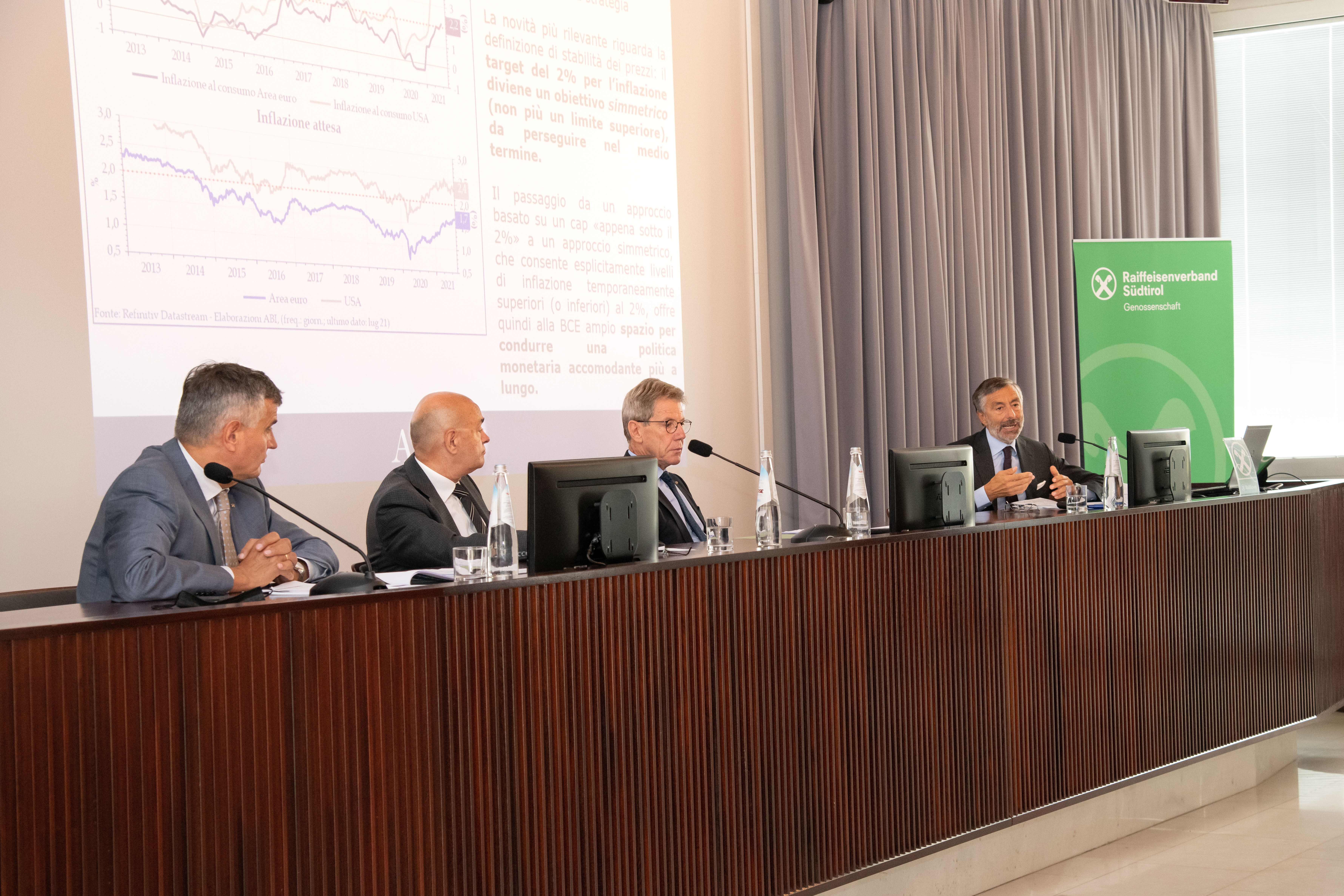 Generaldirektor Paul Gasser, Maurizio Cannistraro (Direktor der Banca d’Italia, Filiale Bozen), Verbandsobmann Herbert Von Leon und ABI-Generaldirektor Giovanni Sabatini